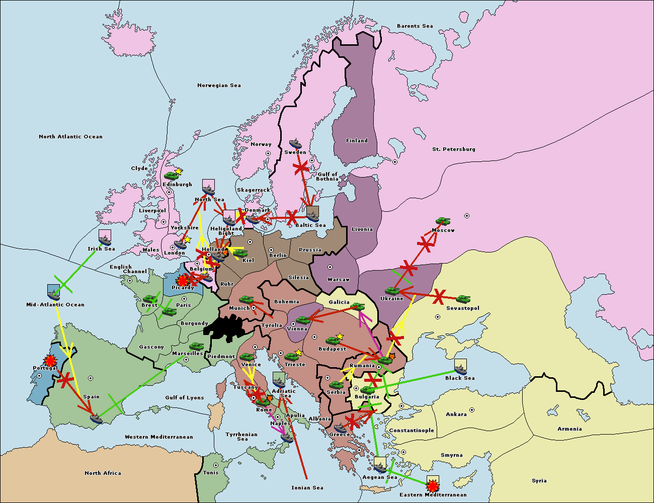 The fleet at Mid-Atlantic Ocean move to Western Mediterranean.