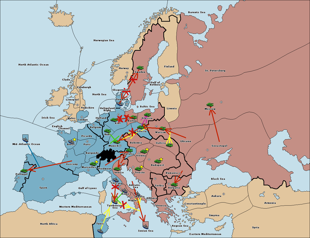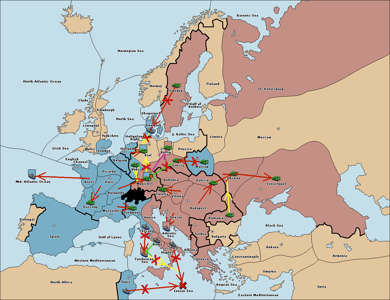 The fleet at Ionian Sea support move to Tunis from Tyrrhenian Sea.