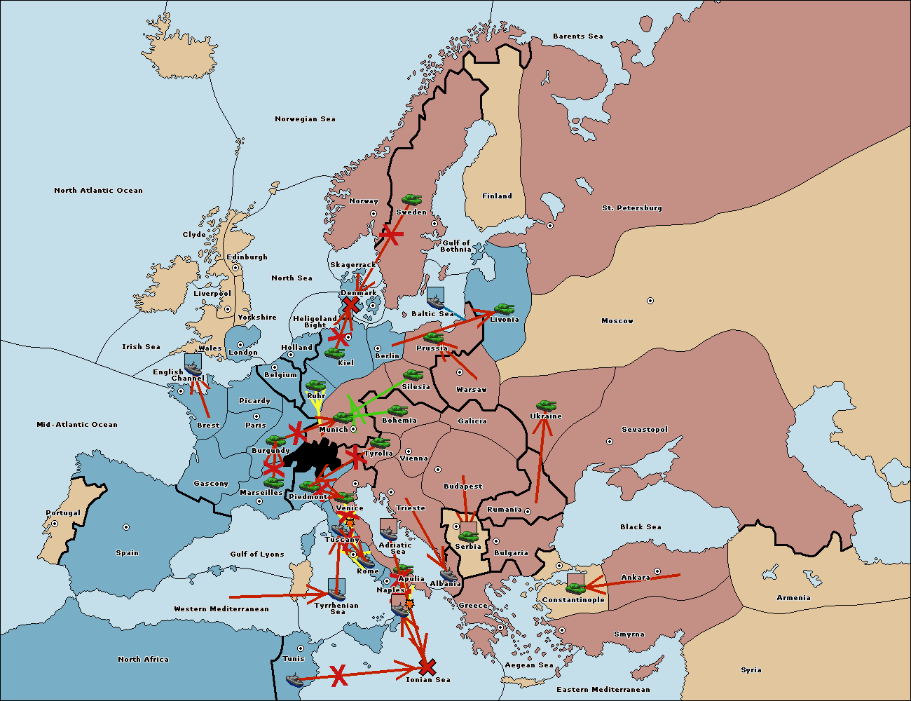 The fleet at Tunis support move to Ionian Sea from Albania.
