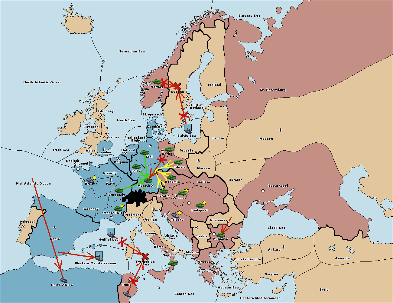 The fleet at Mid-Atlantic Ocean move to Western Mediterranean.