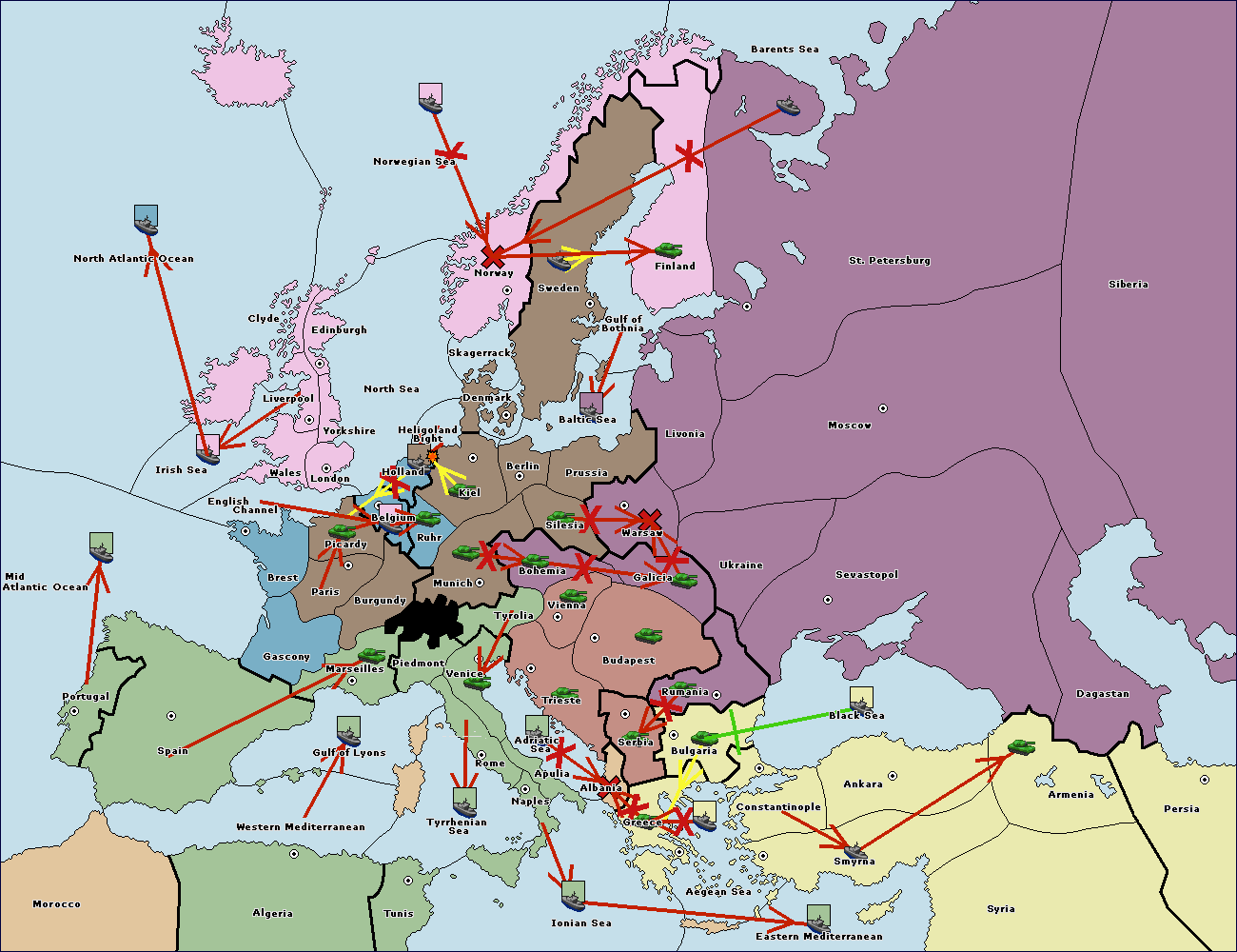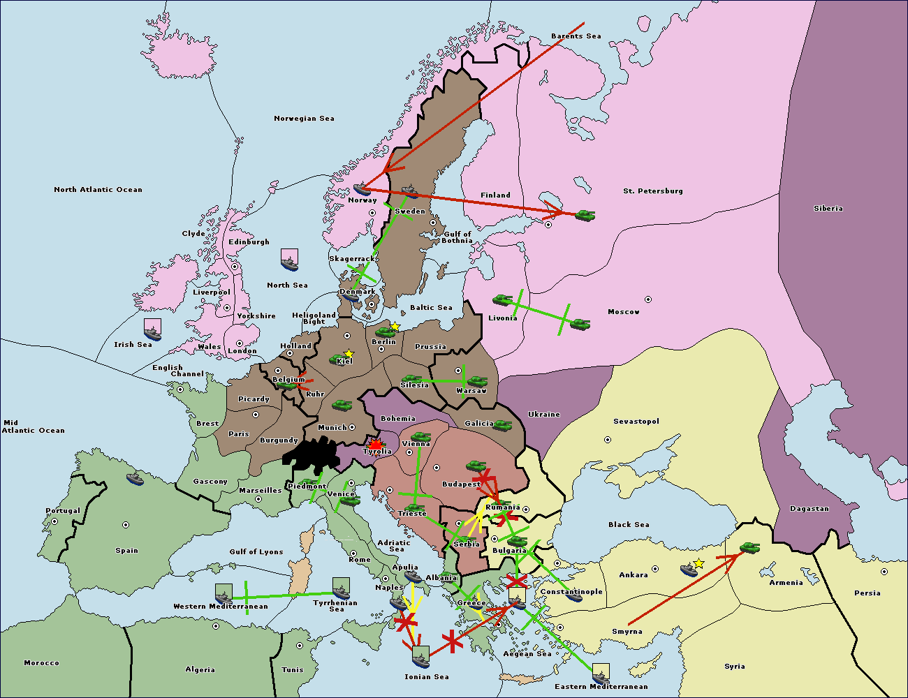 The fleet at Black Sea support move to Bulgaria from Constantinople.
