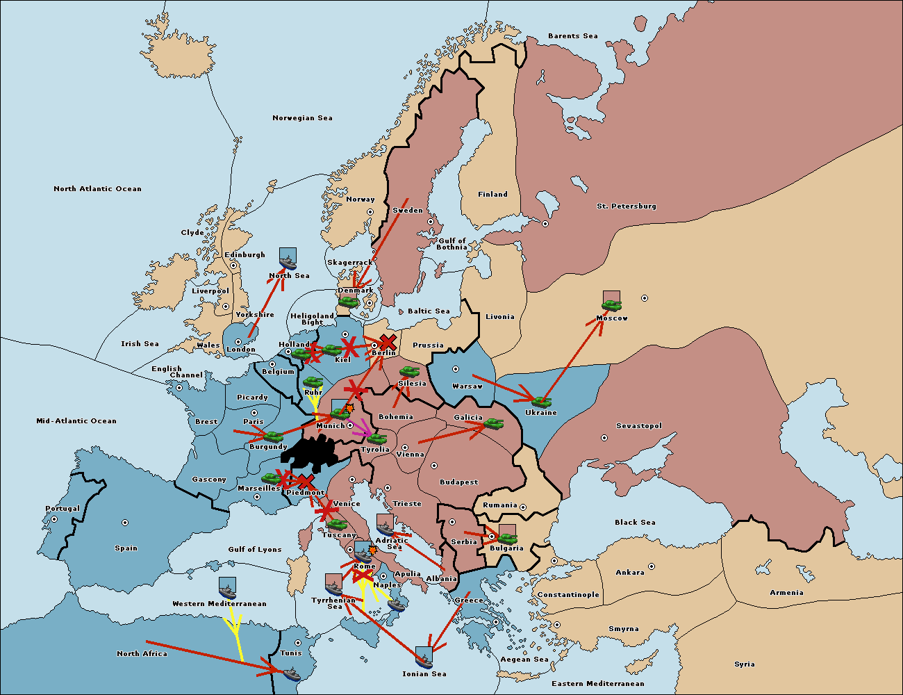 The fleet at Tyrrhenian Sea support move to Ionian Sea from Tunis.