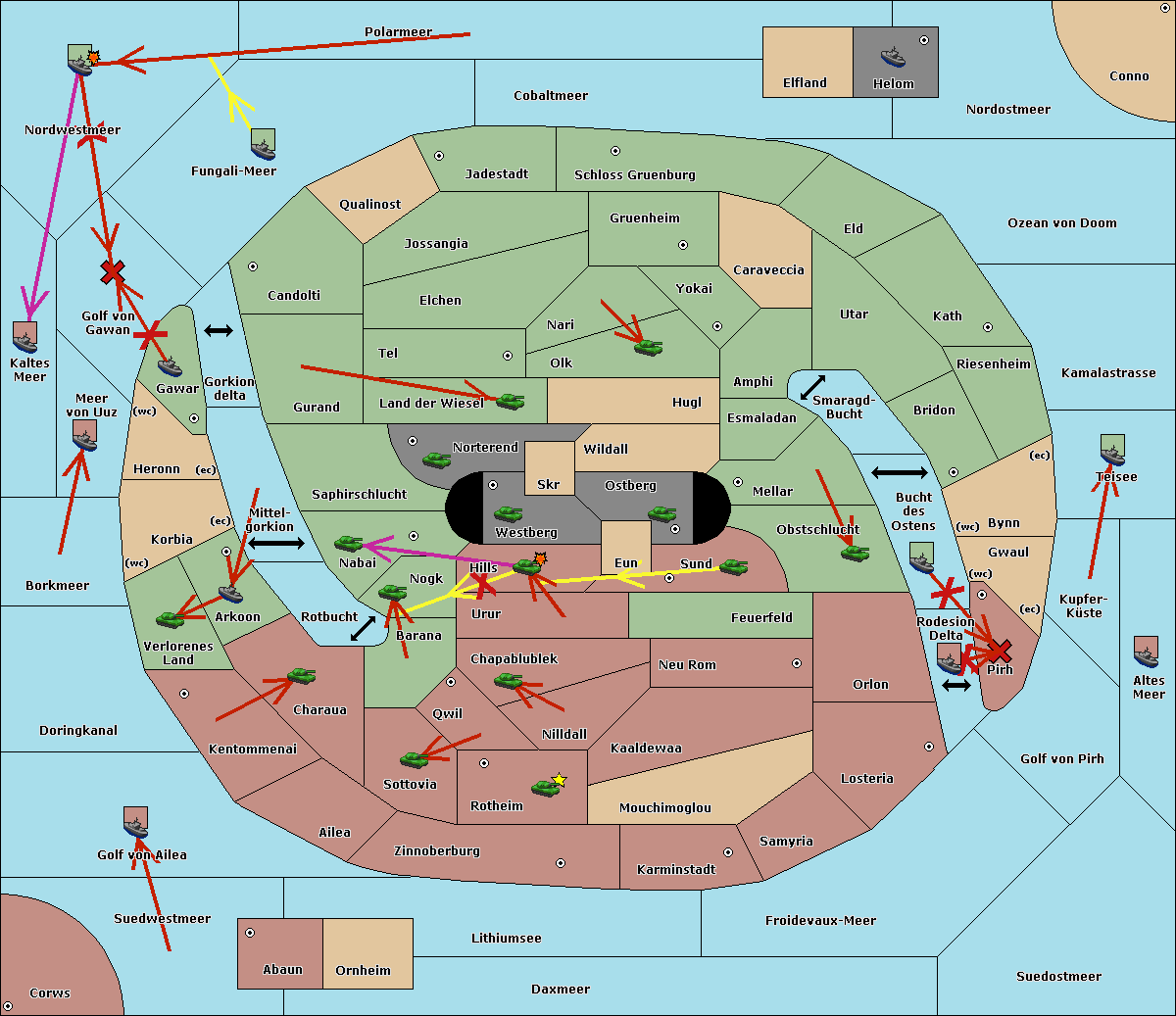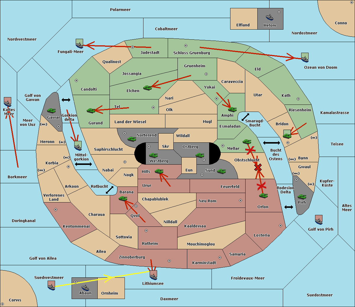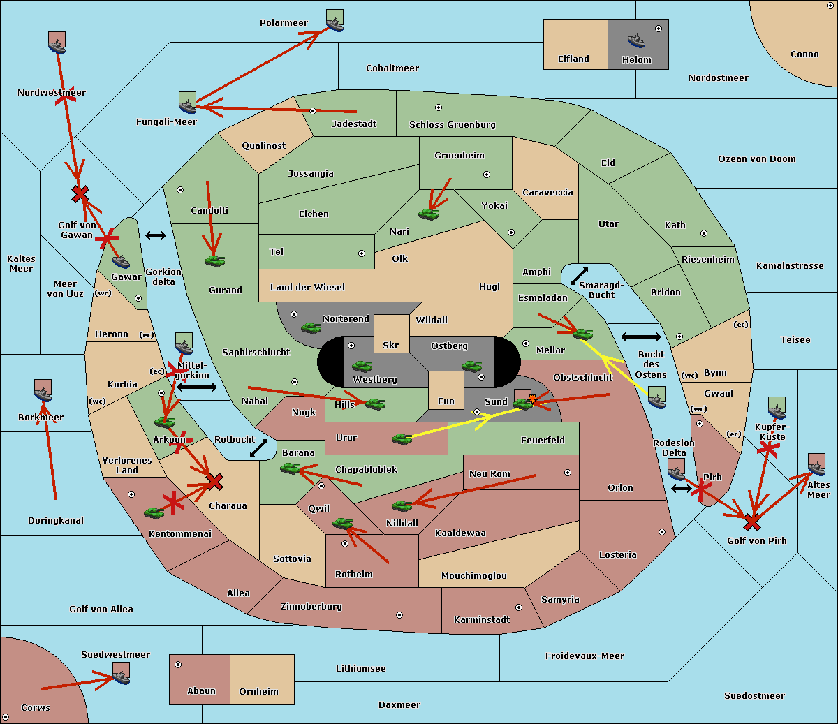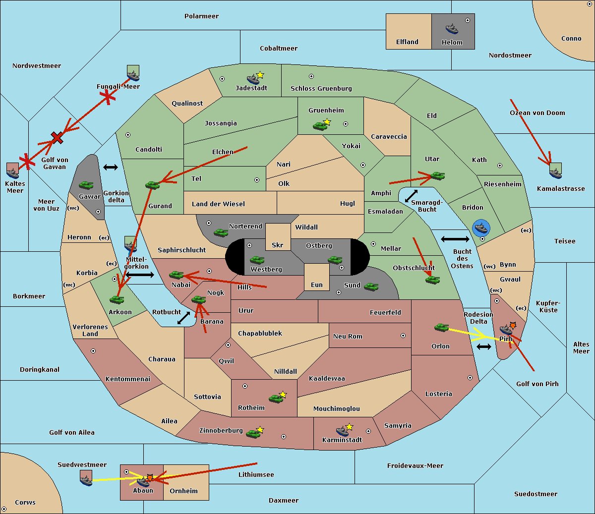 The fleet at Kaltes Meer move to Golf von Gawan.