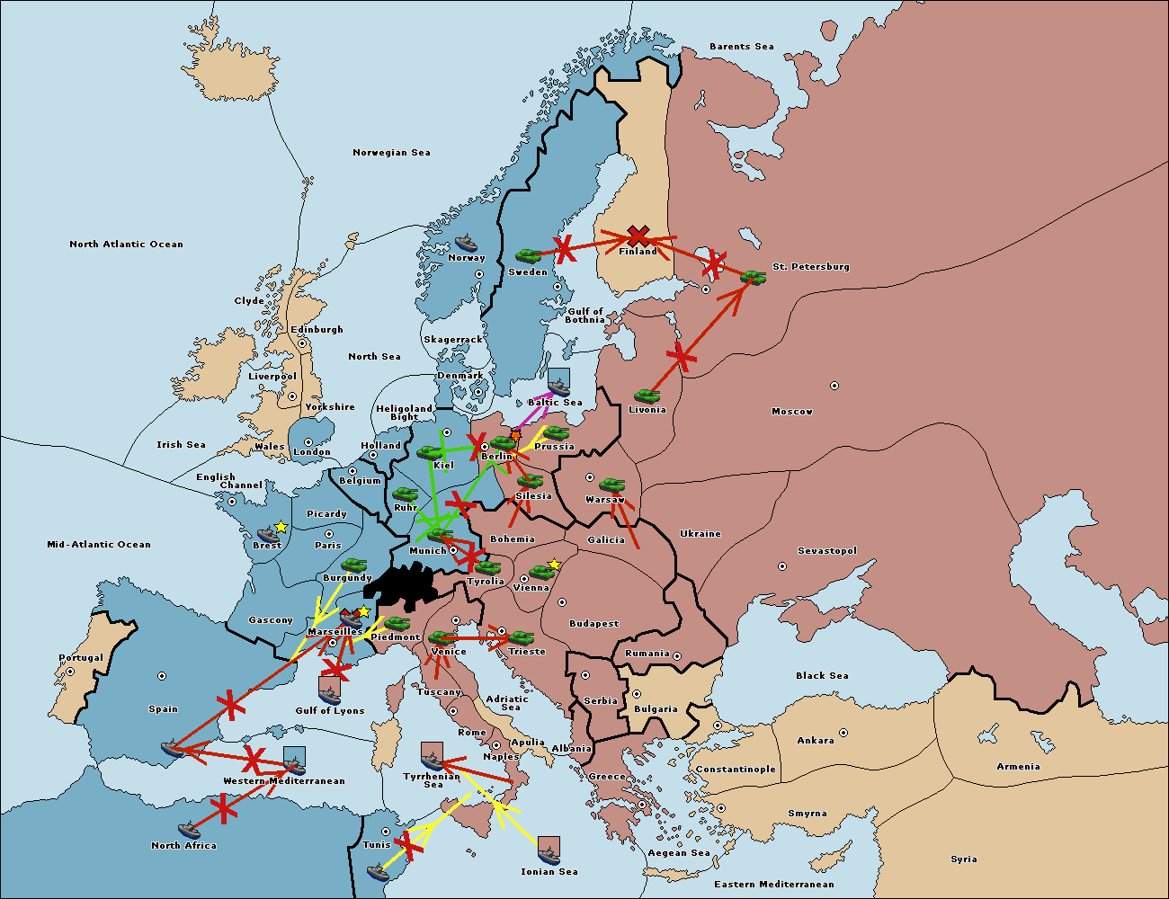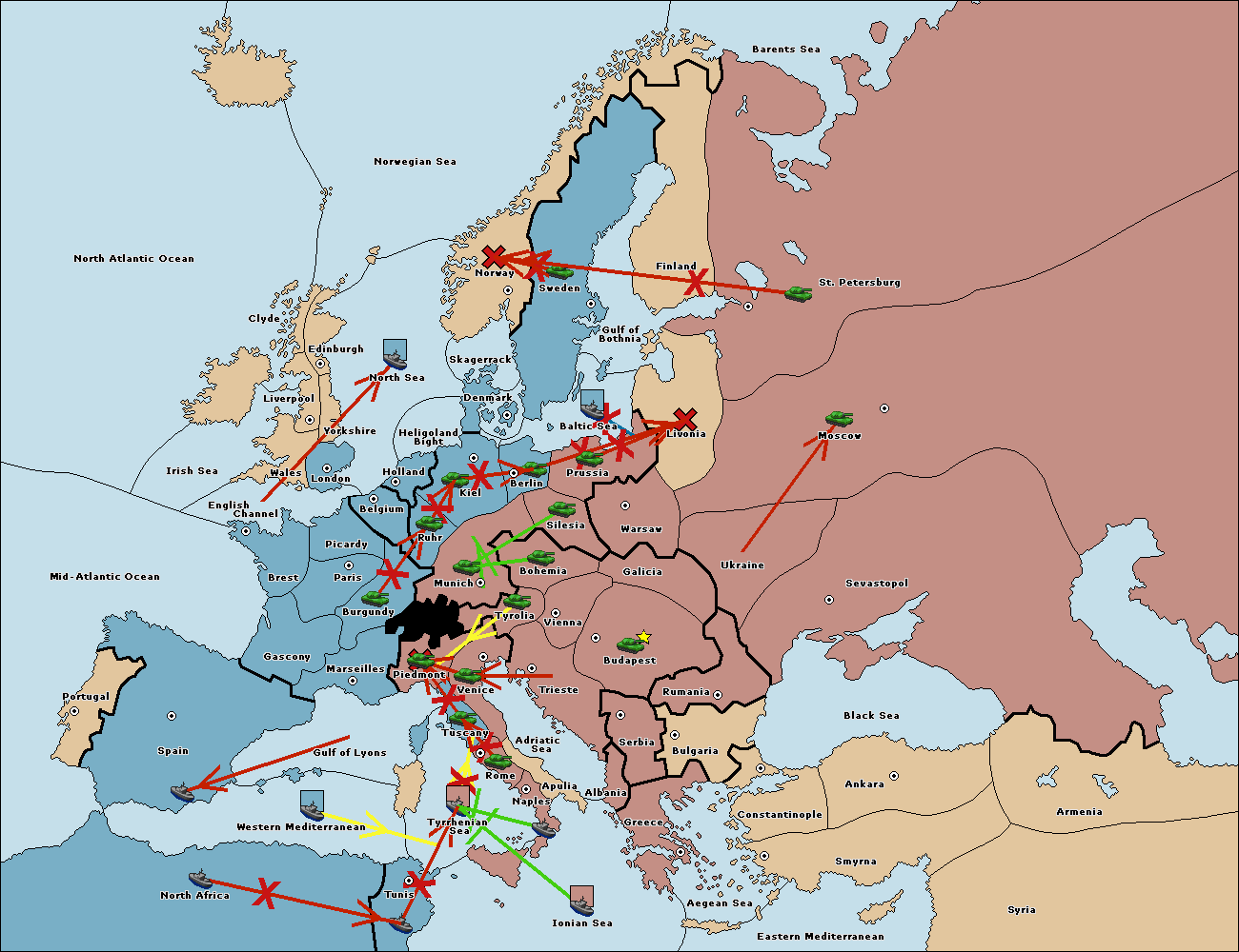 The fleet at Gulf of Lyons support move to Tuscany from Piedmont.