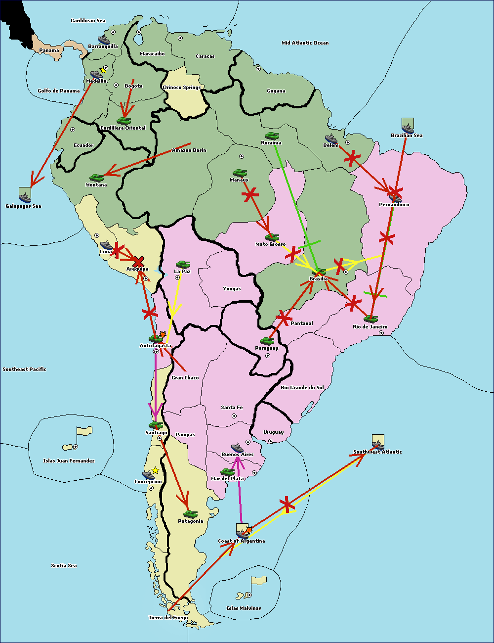 The army at Orinoco Springs move to Amazon Basin.