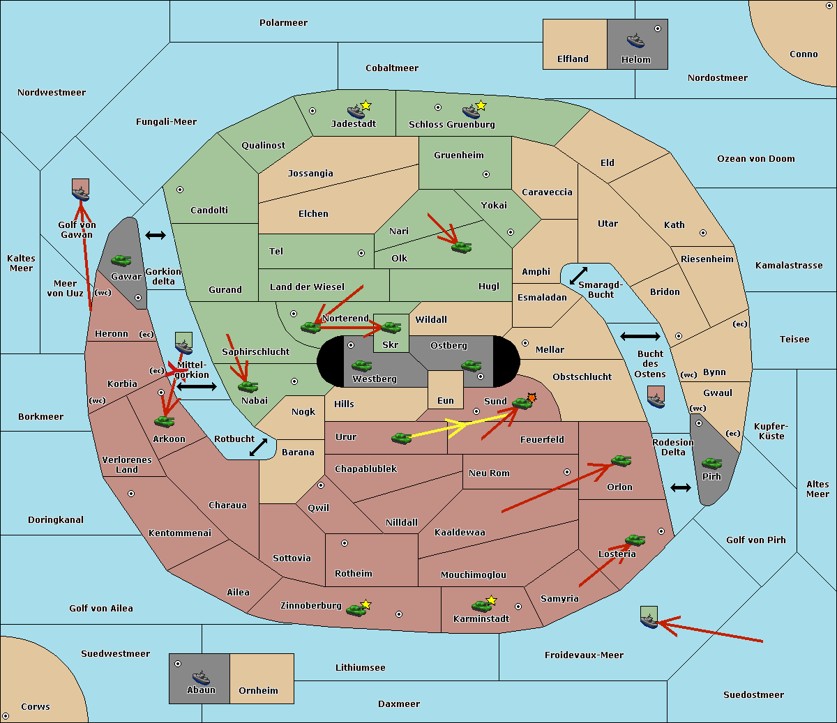 The fleet at Zinnoberburg move to Ailea.