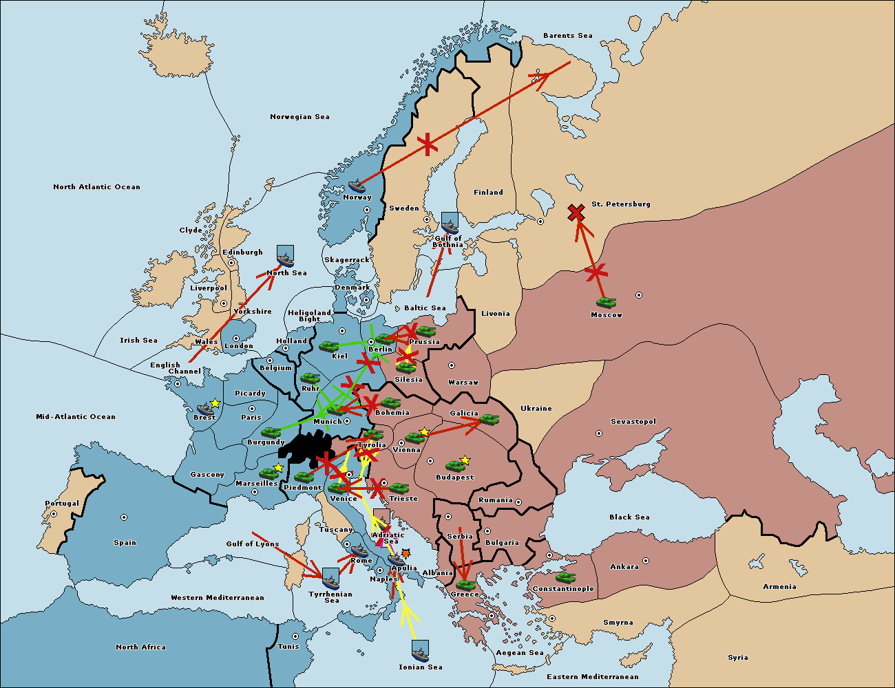 The fleet at Naples support move to Ionian Sea from Tunis.