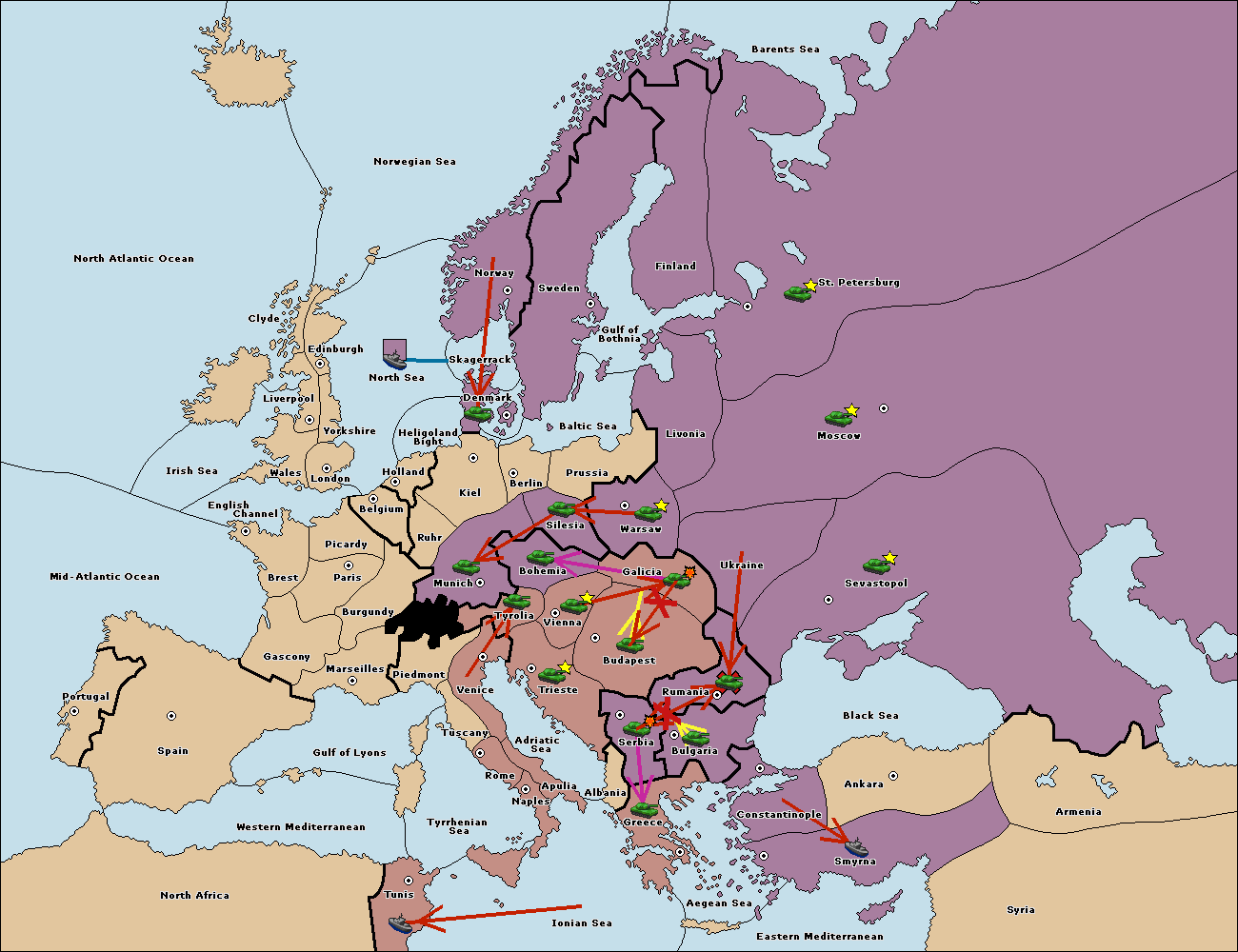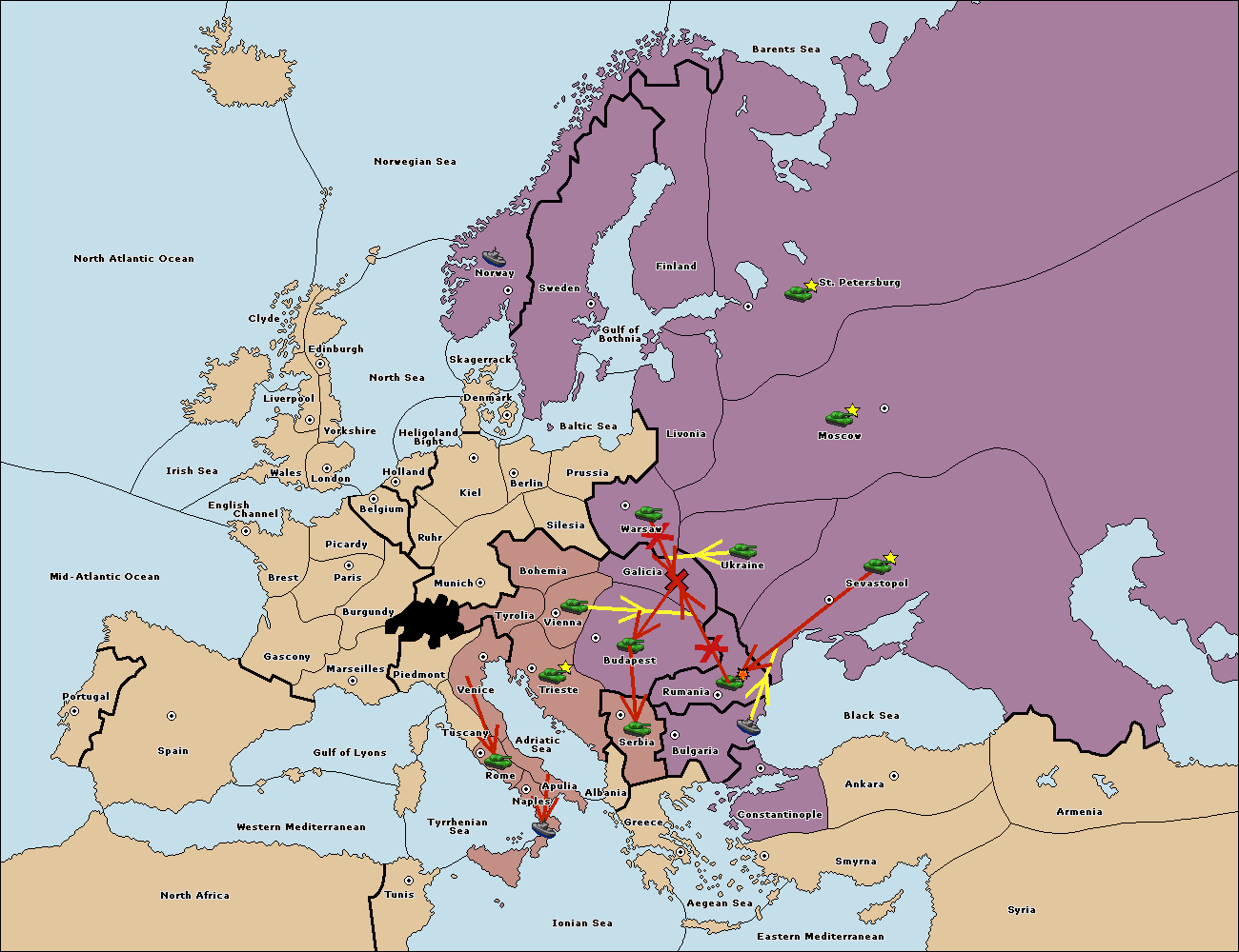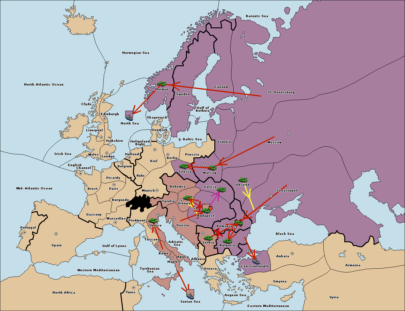 The fleet at Bulgaria (North Coast) move to Constantinople.