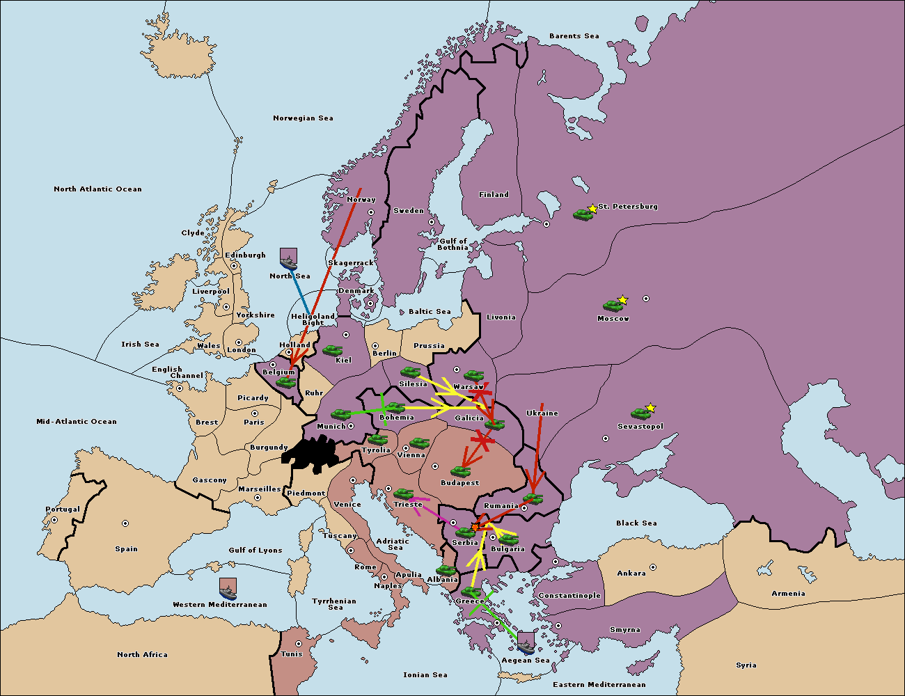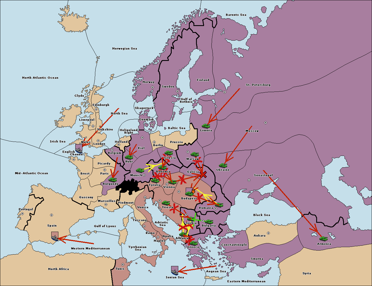 The fleet at Bulgaria (North Coast) support move to Rumania from Sevastopol.