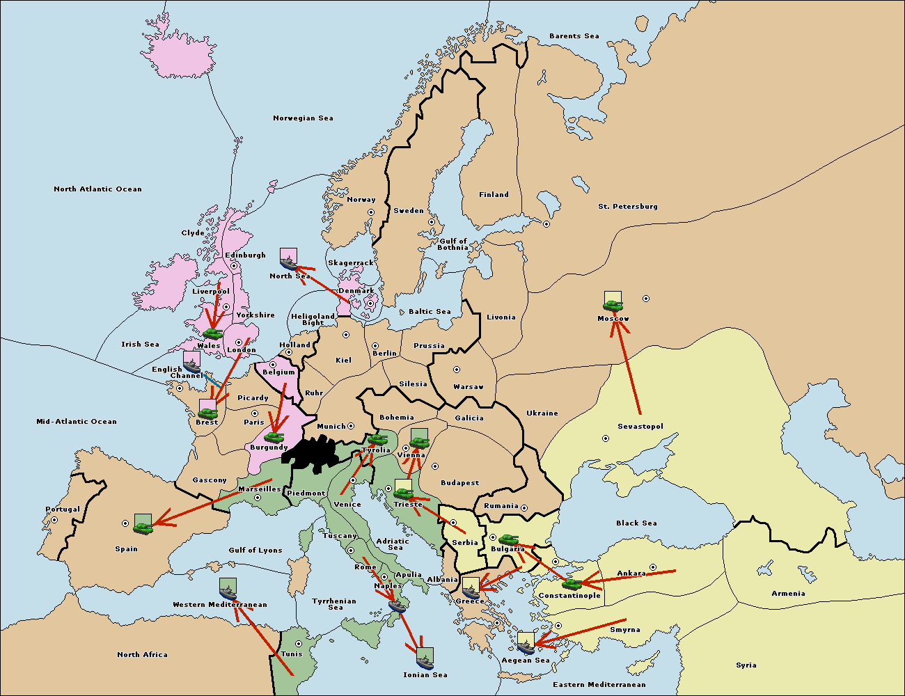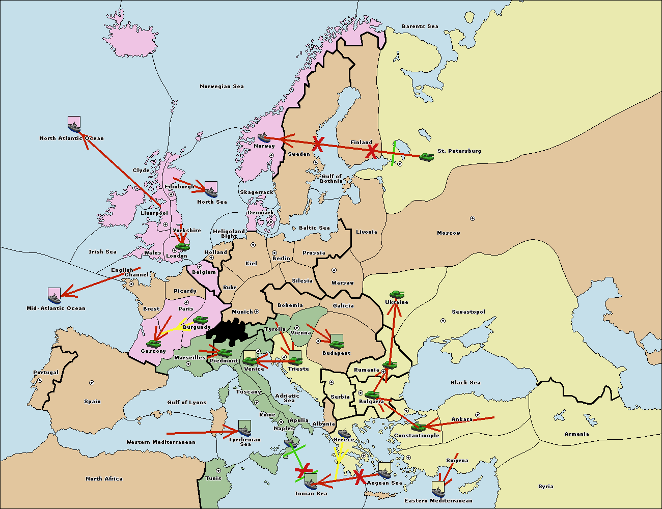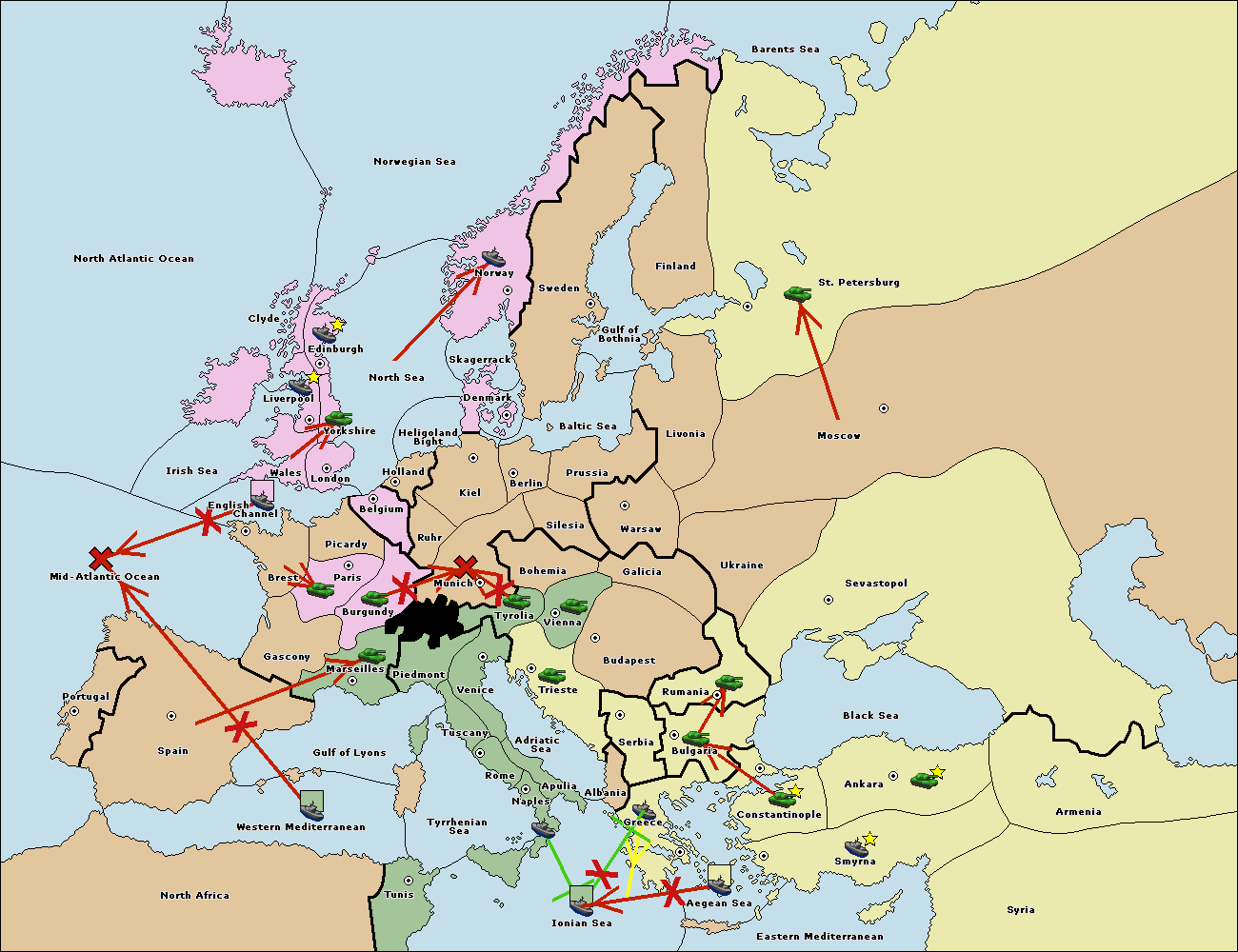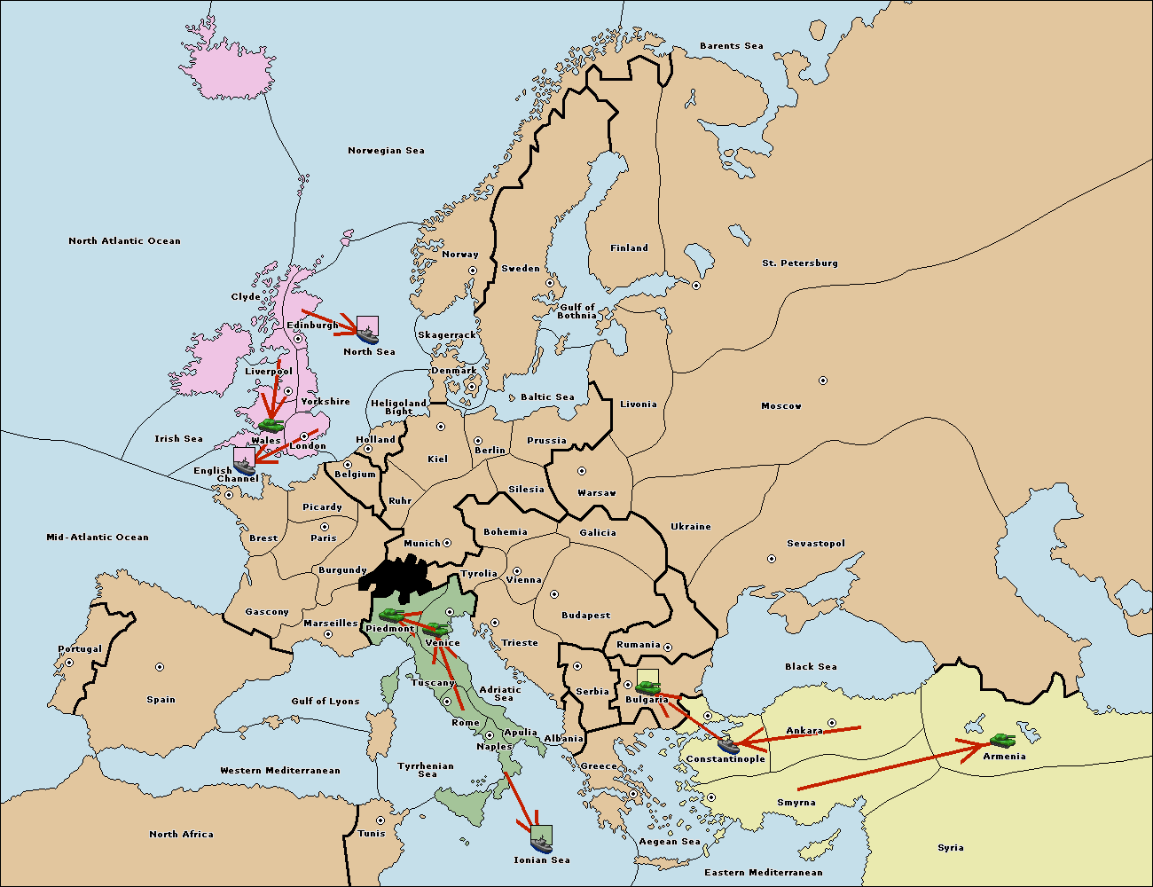 The fleet at Bulgaria (South Coast) move to Greece.