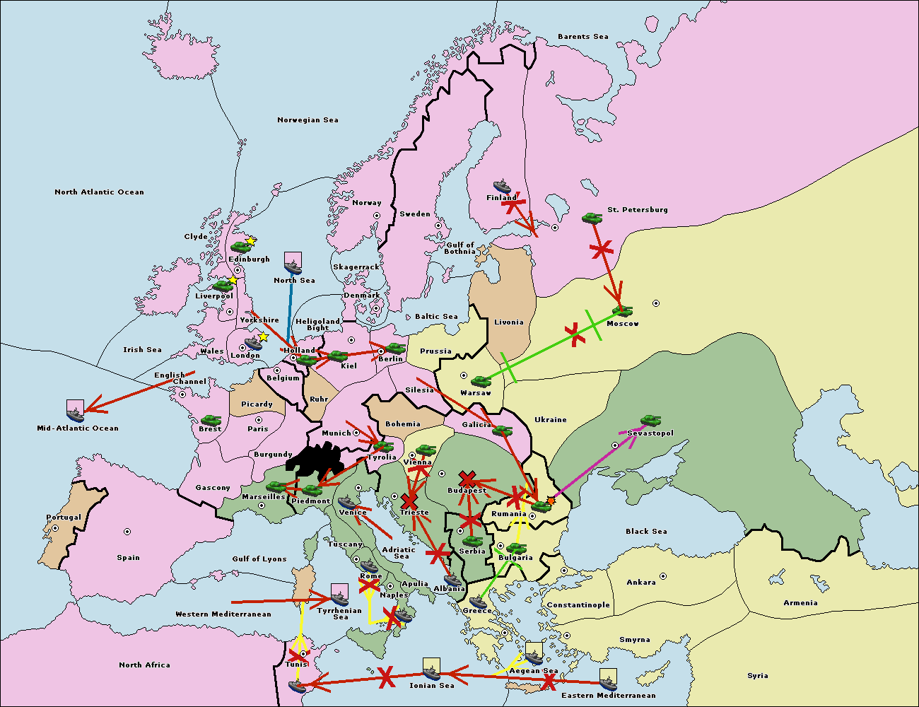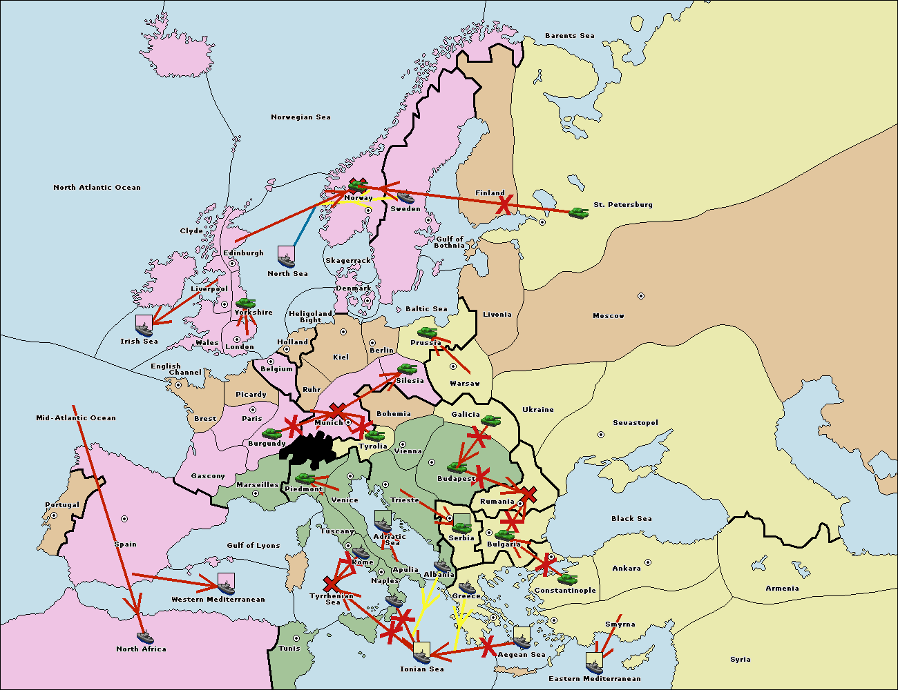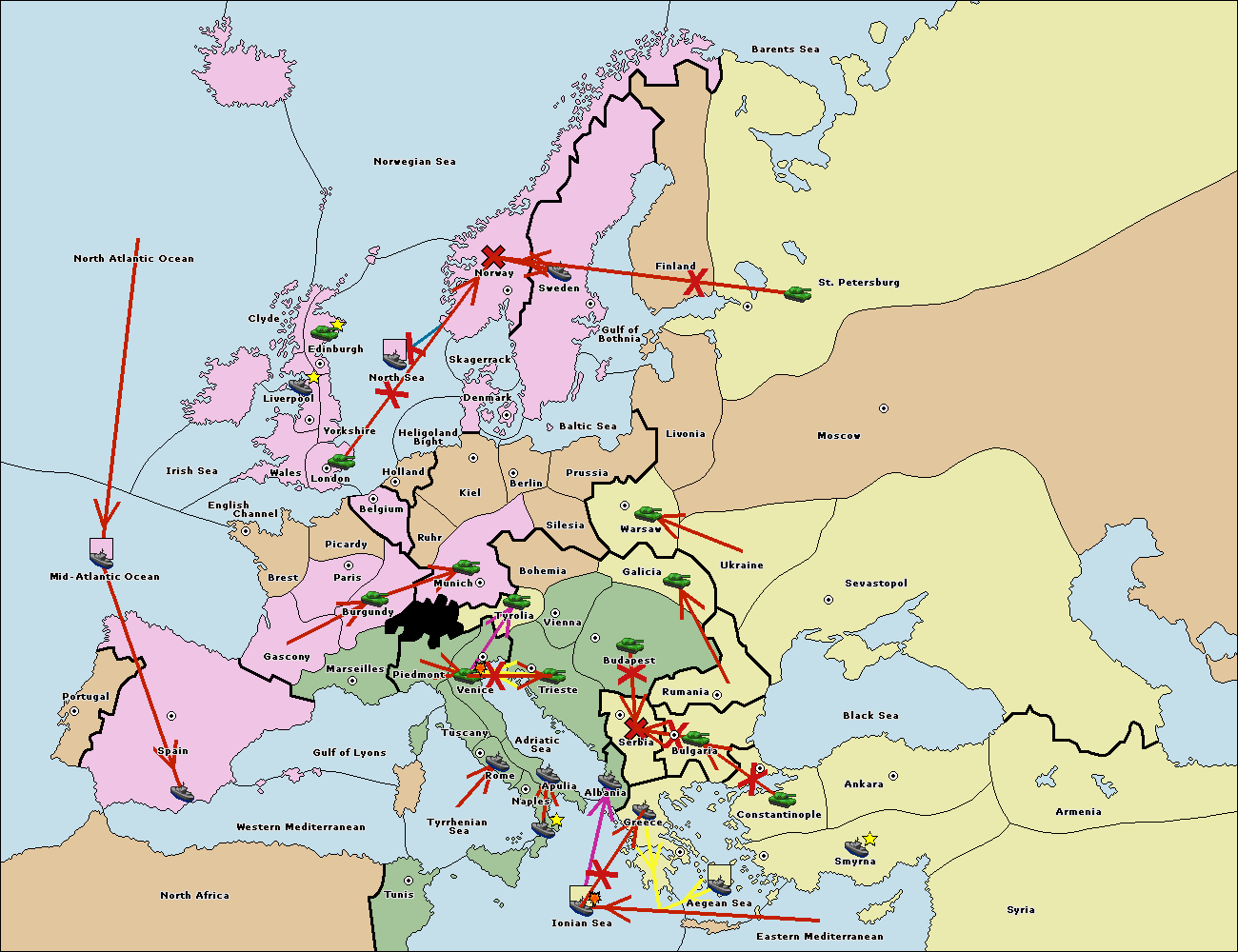 The fleet at Bulgaria (South Coast) move to Greece.
