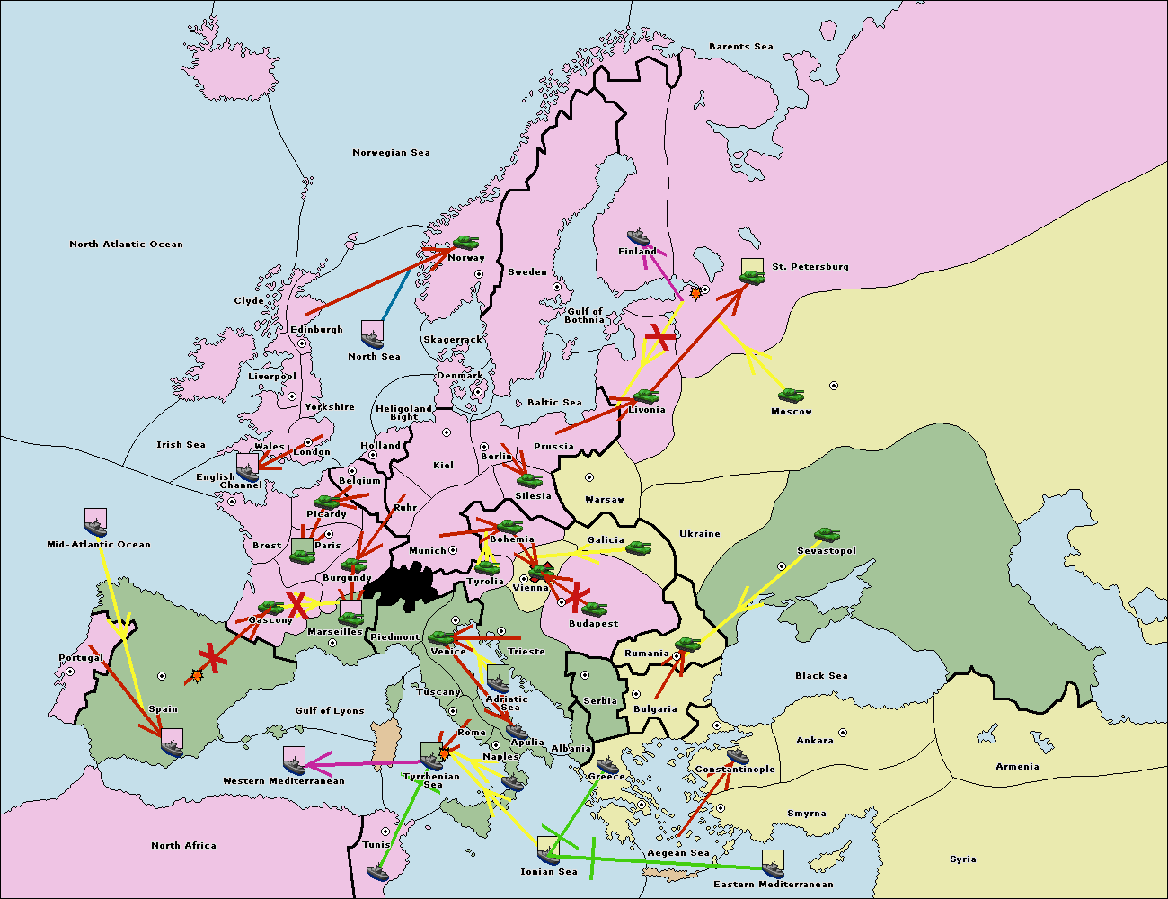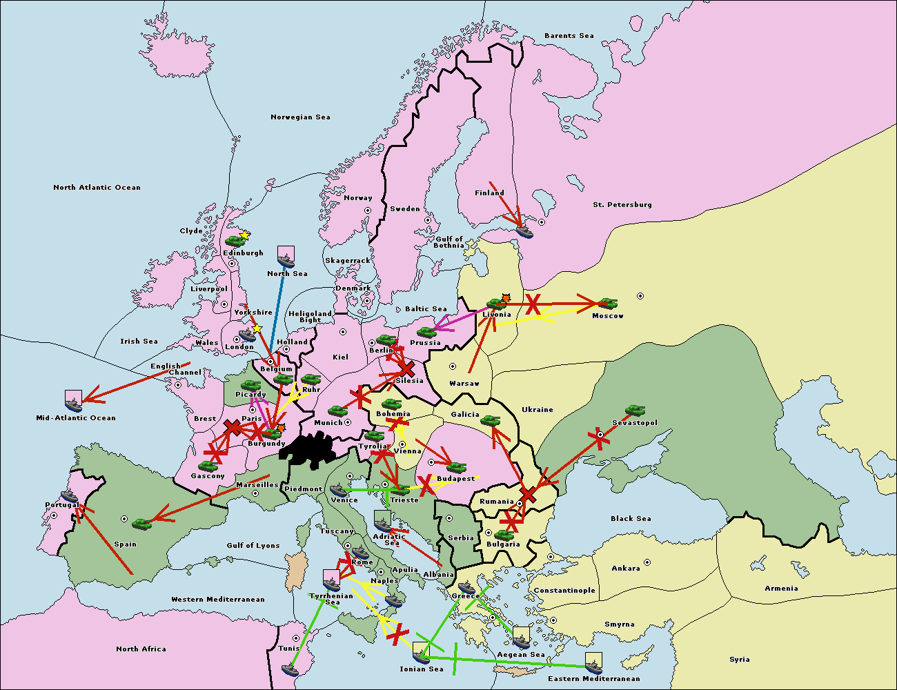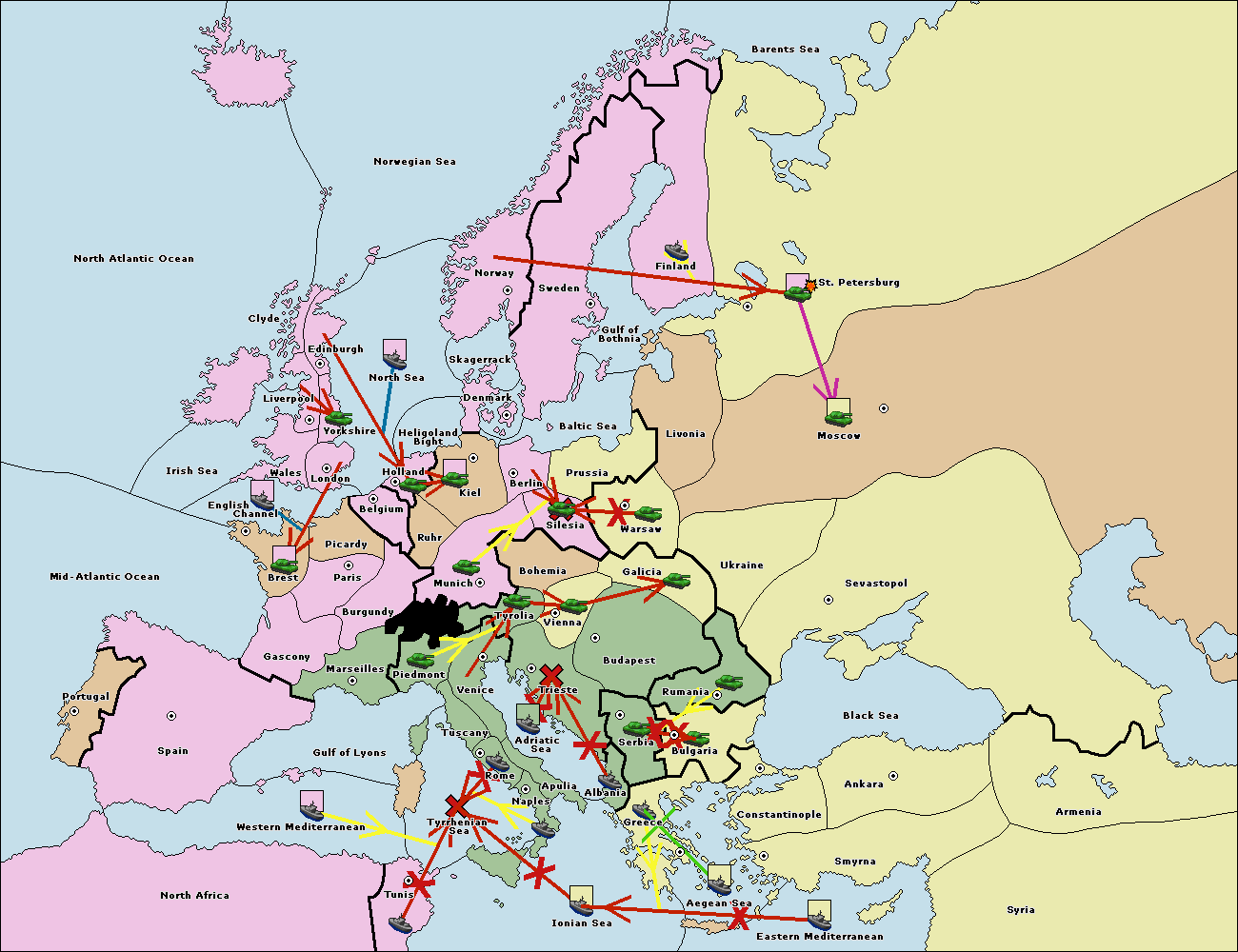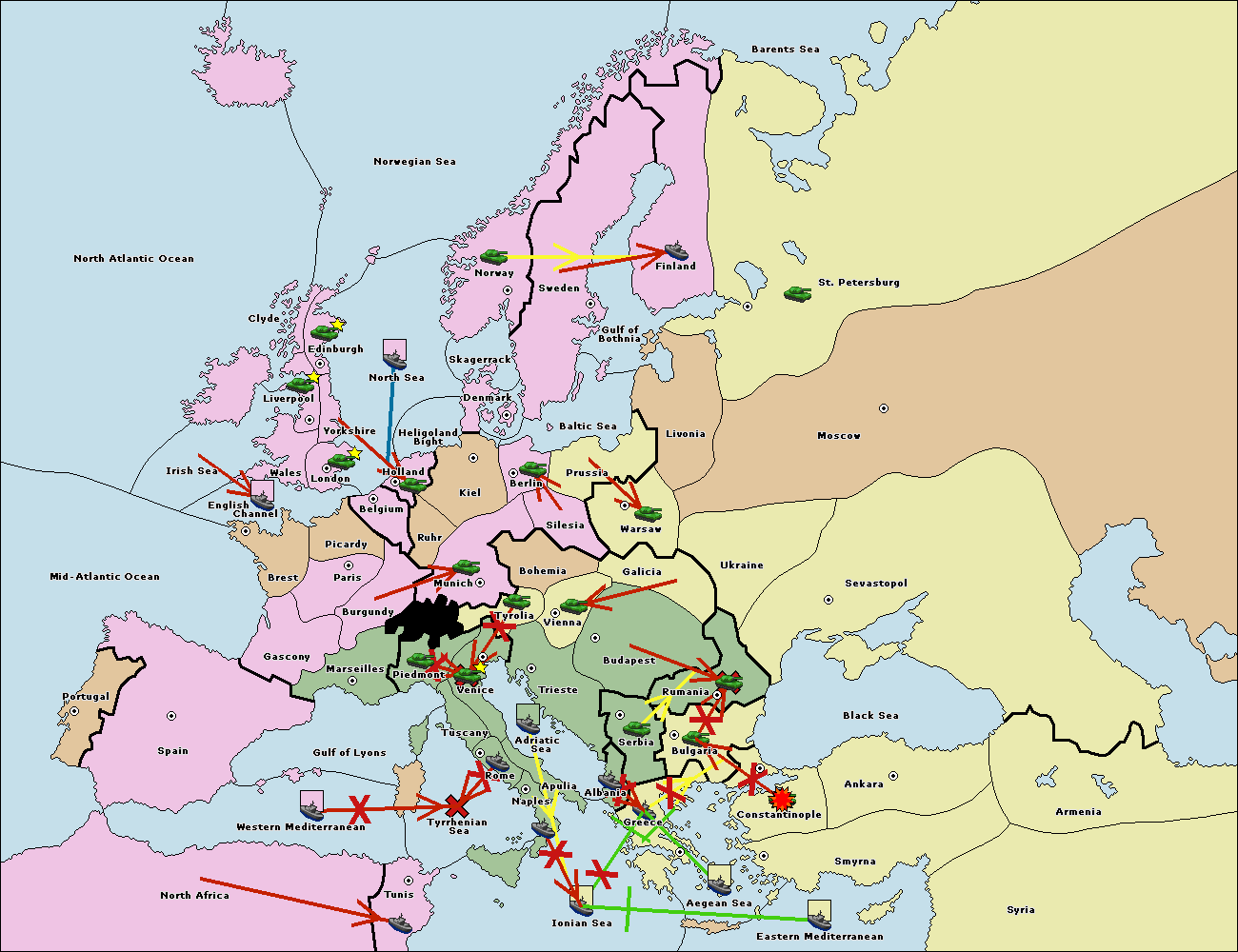 The fleet at Bulgaria (South Coast) move to Greece.