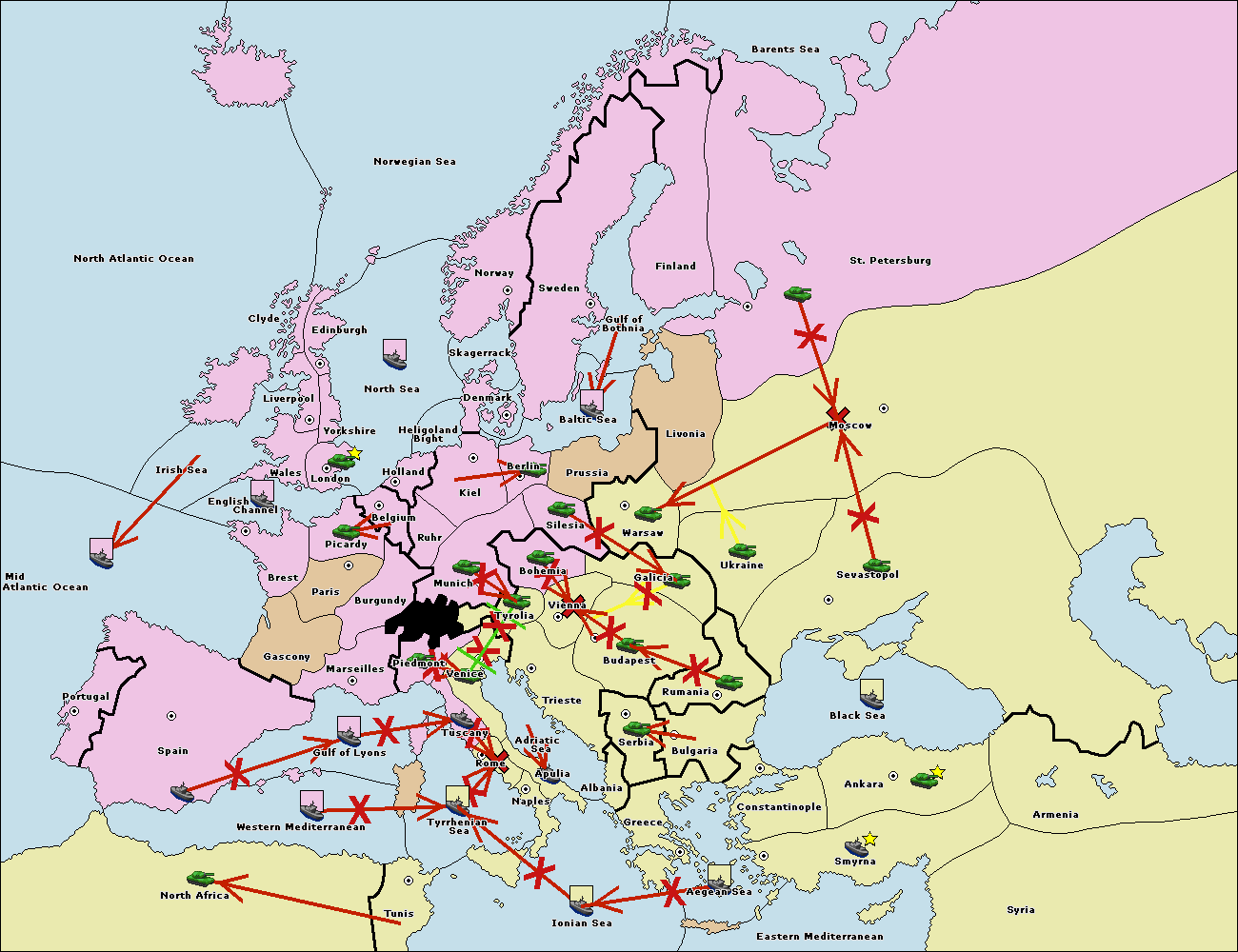 The fleet at Mid-Atlantic Ocean move to Western Mediterranean.