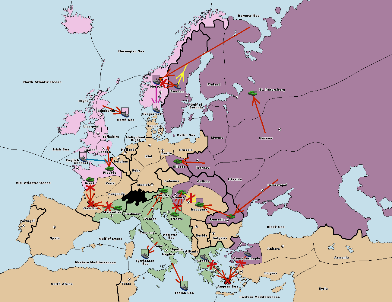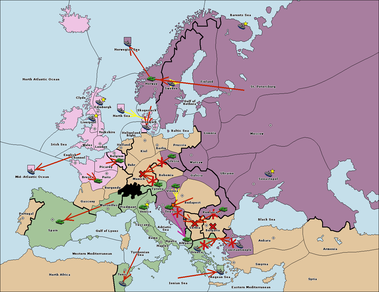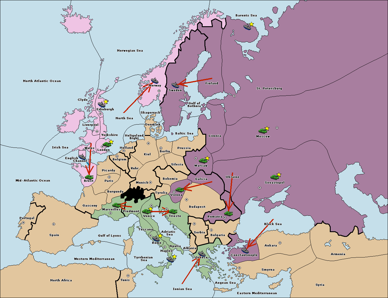 The fleet at Greece move to Bulgaria (South Coast).