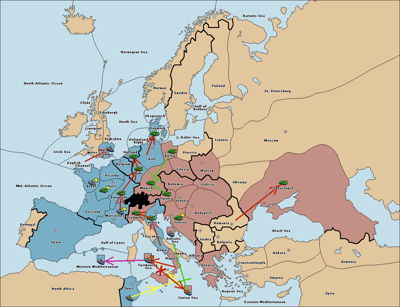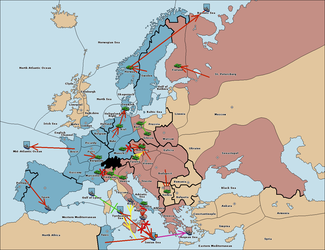 The fleet at Ionian Sea support move to Naples from Tyrrhenian Sea.