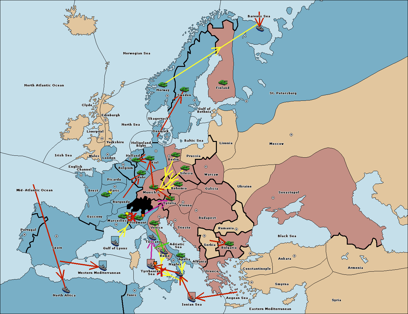 The fleet at Western Mediterranean move to Tyrrhenian Sea.
