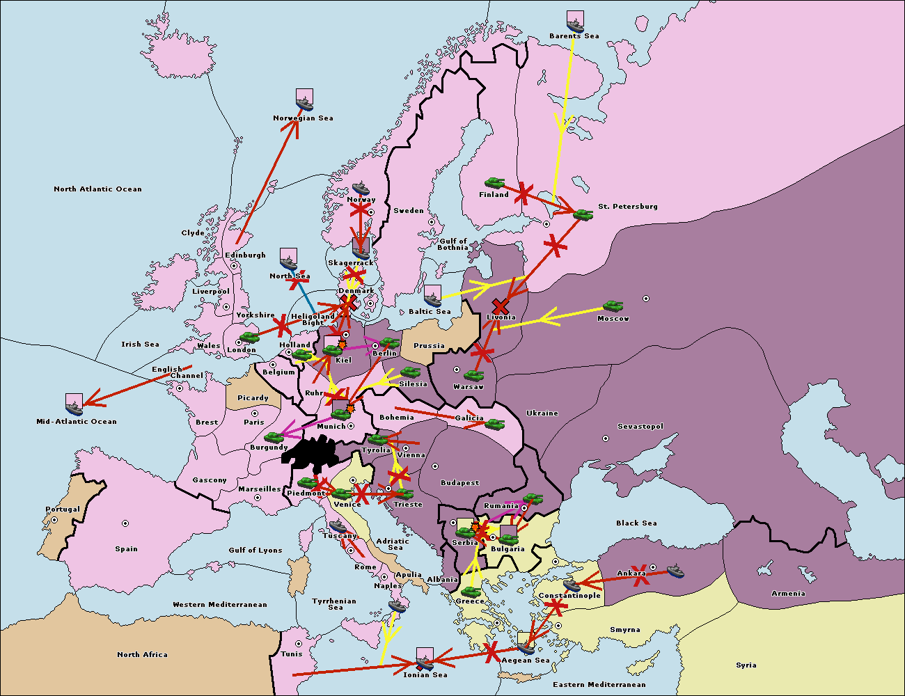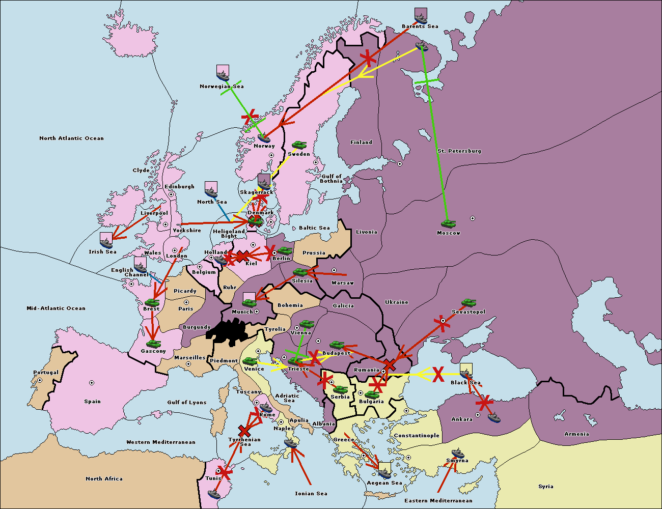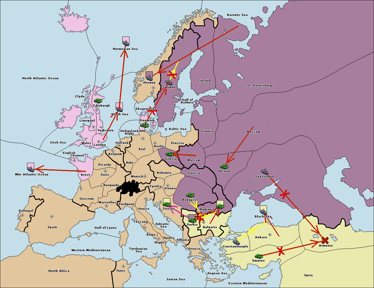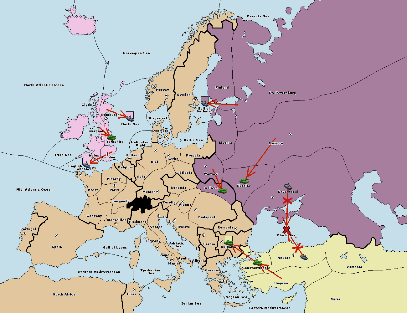 The fleet at Constantinople support move to Black Sea from Ankara.