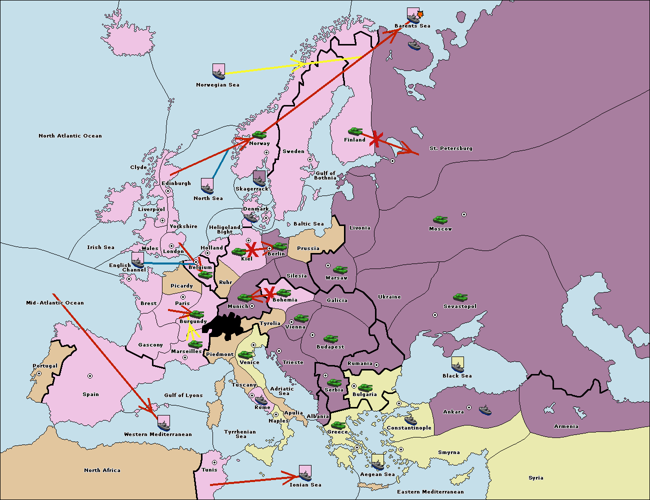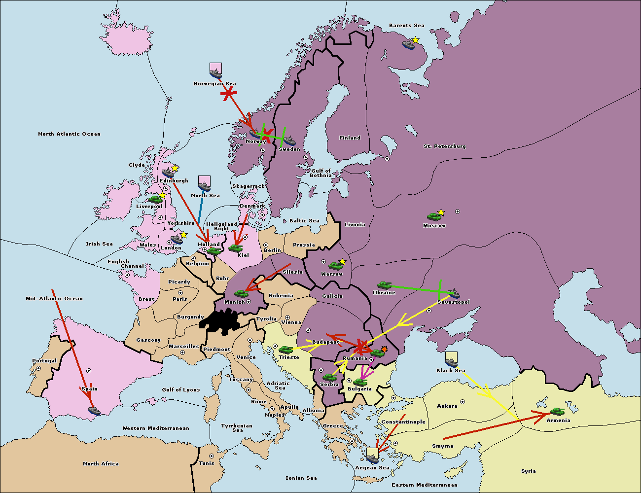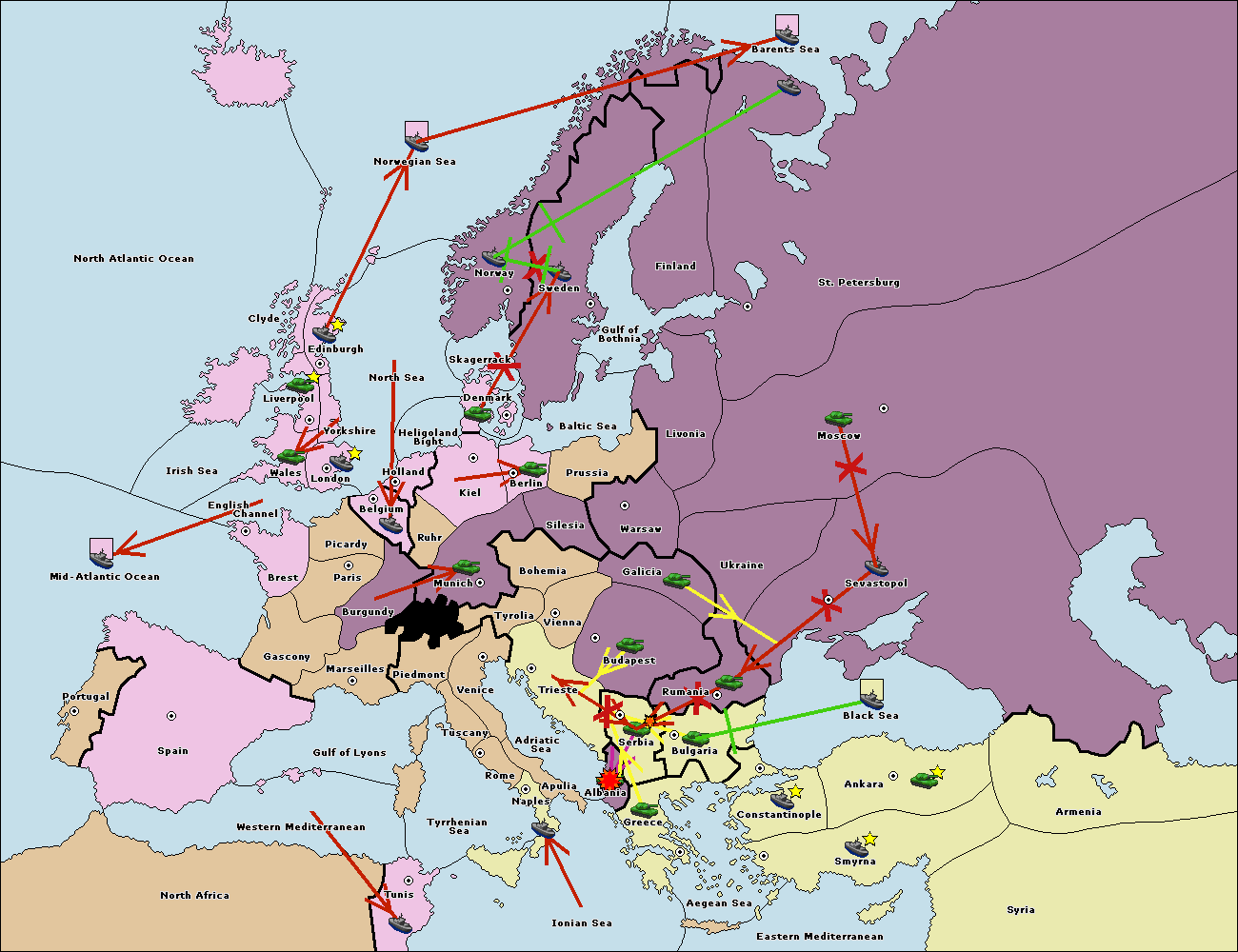 The fleet at Ankara support move to Constantinople from Bulgaria.