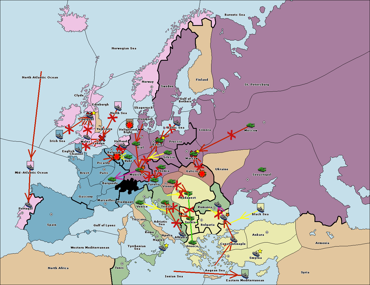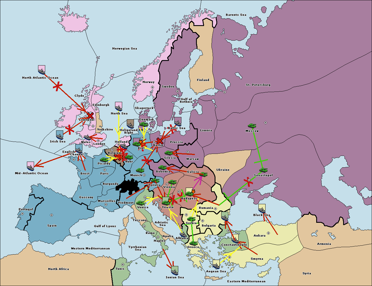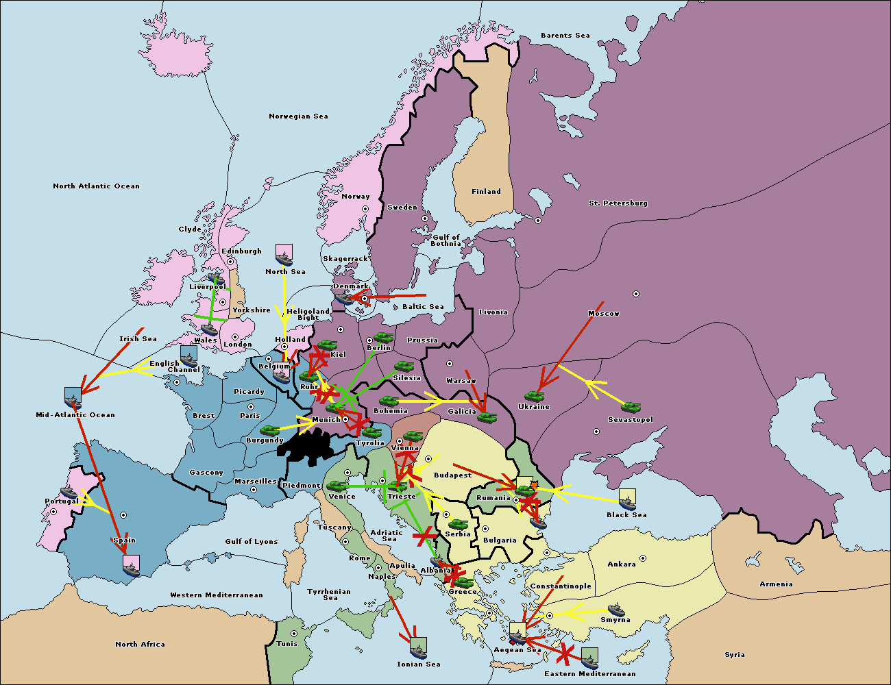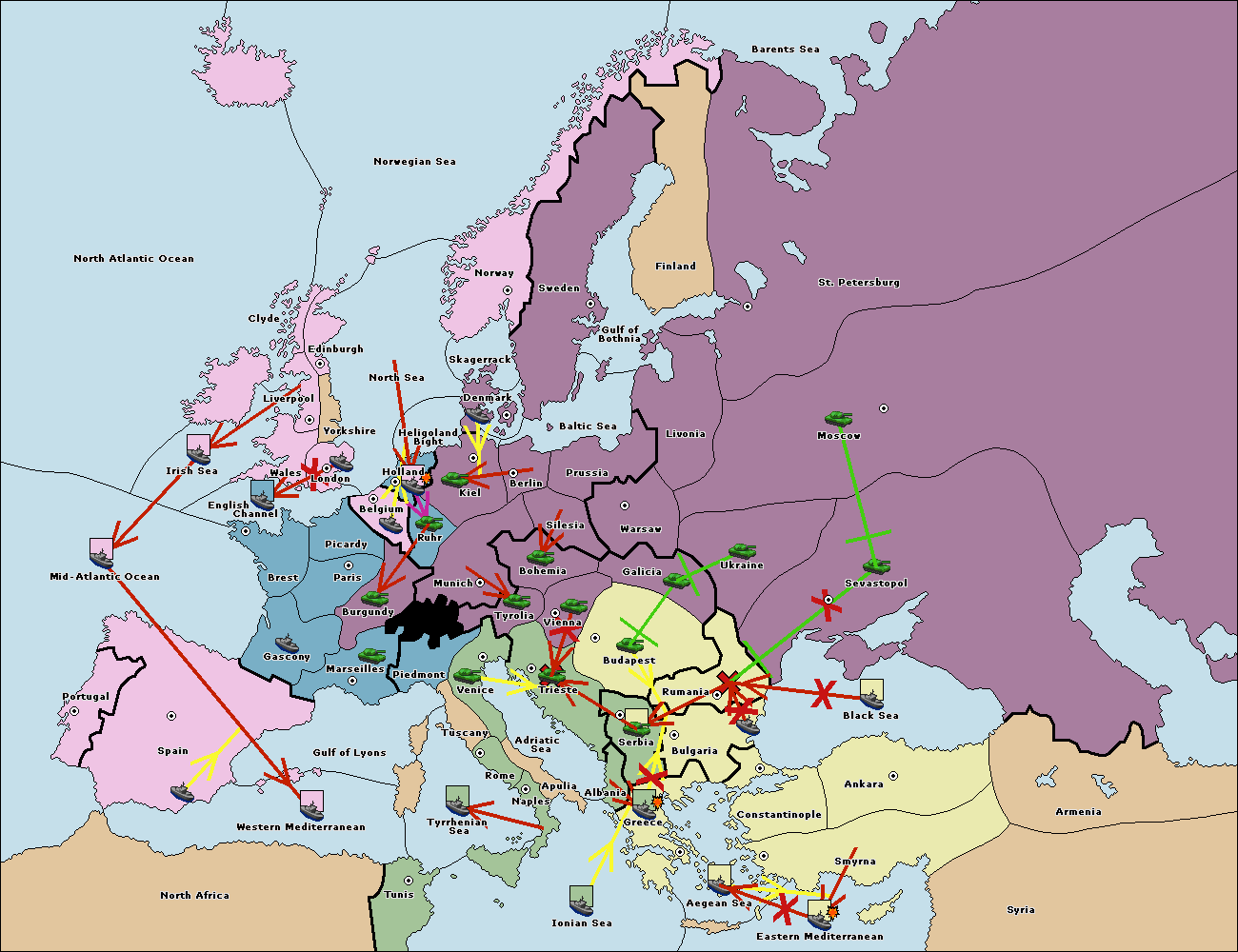 The fleet at Bulgaria (South Coast) move to Aegean Sea.