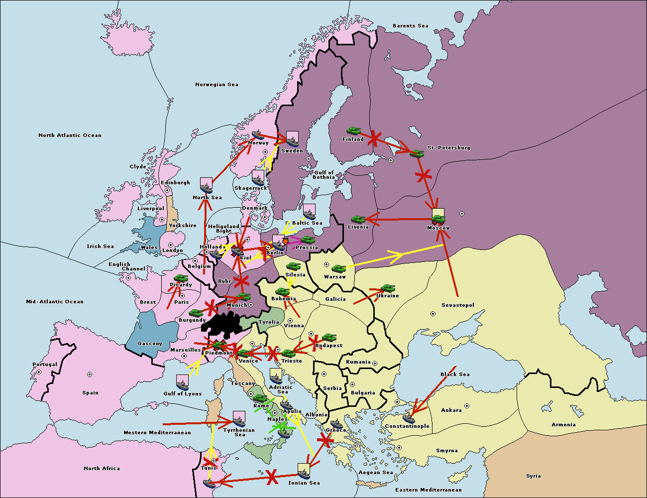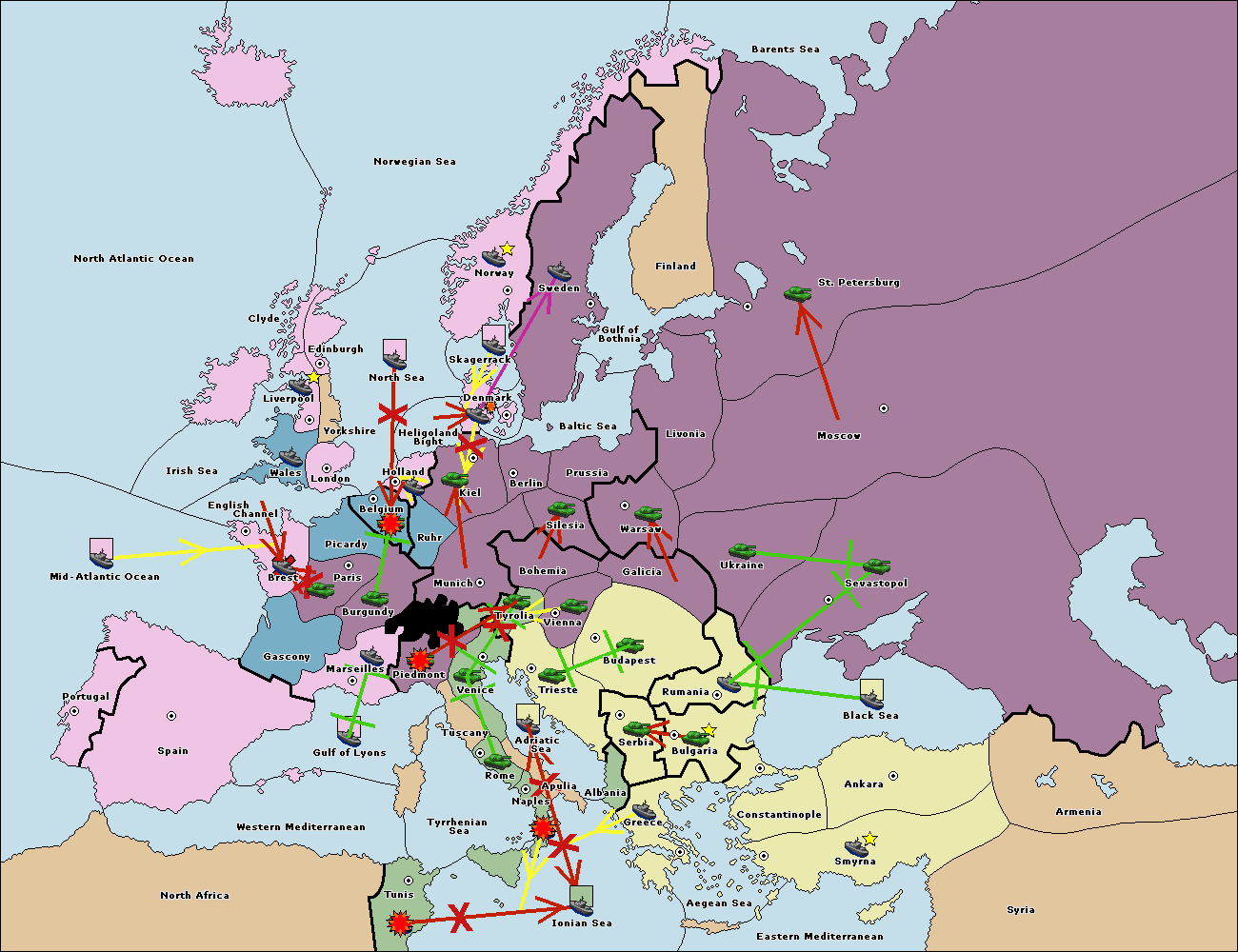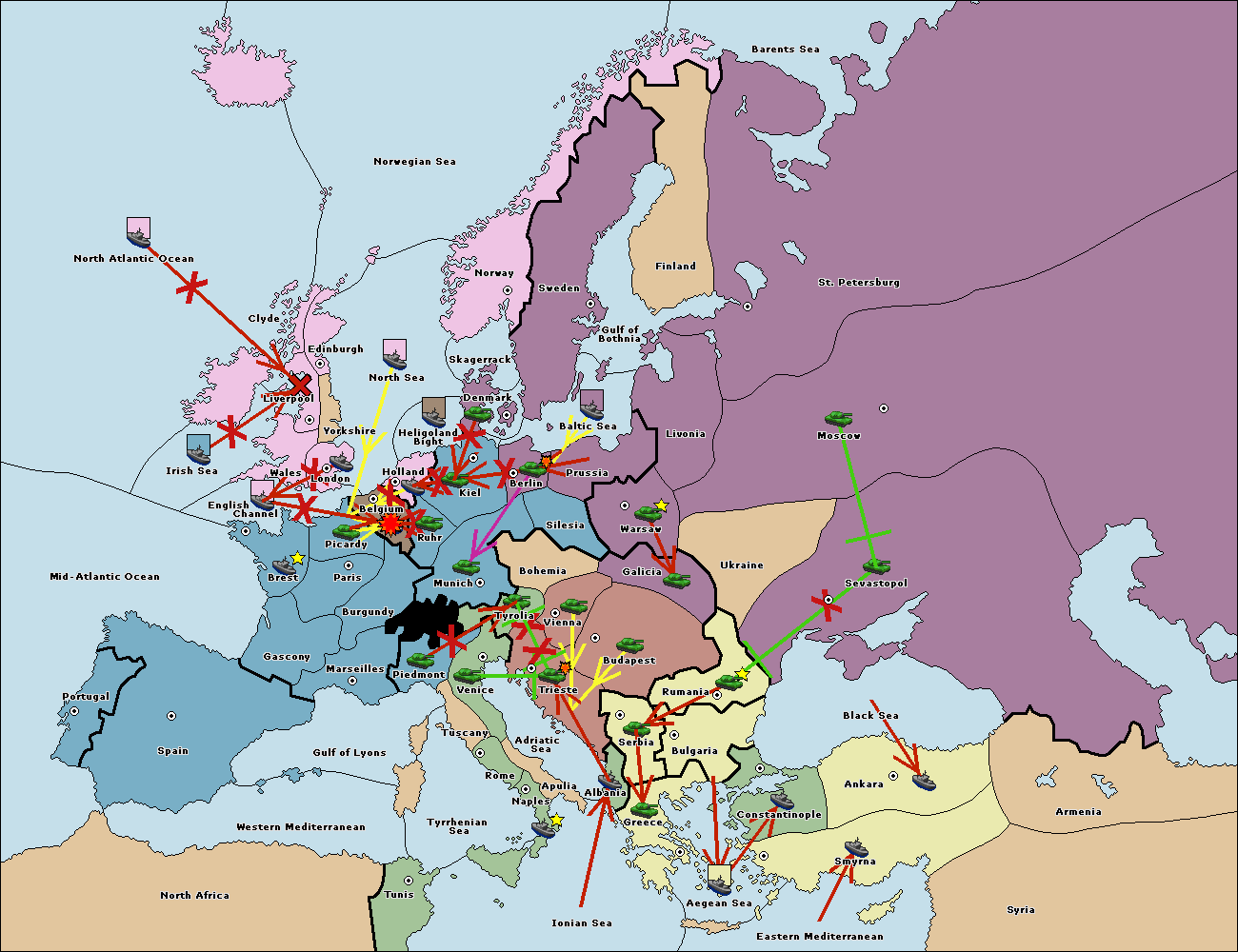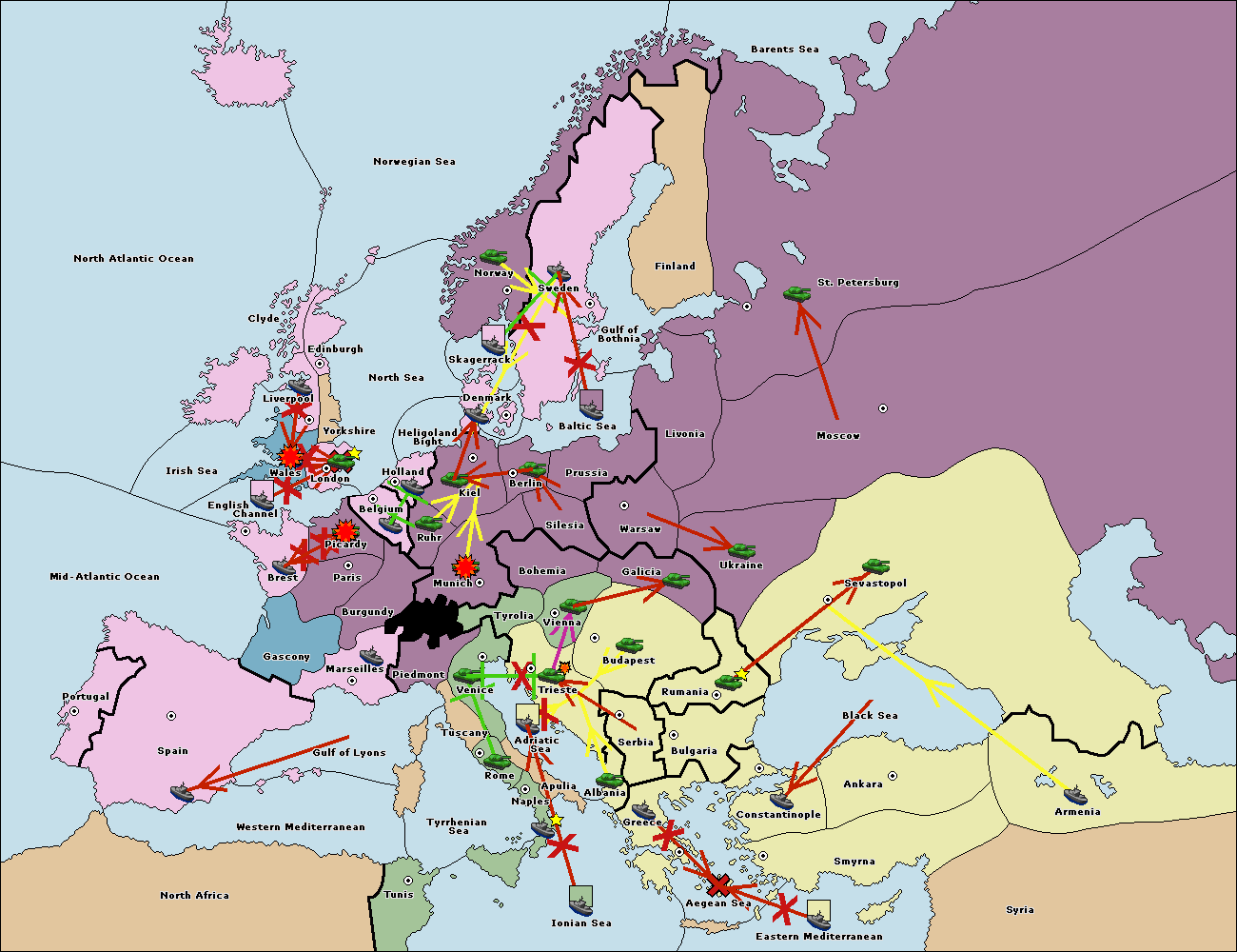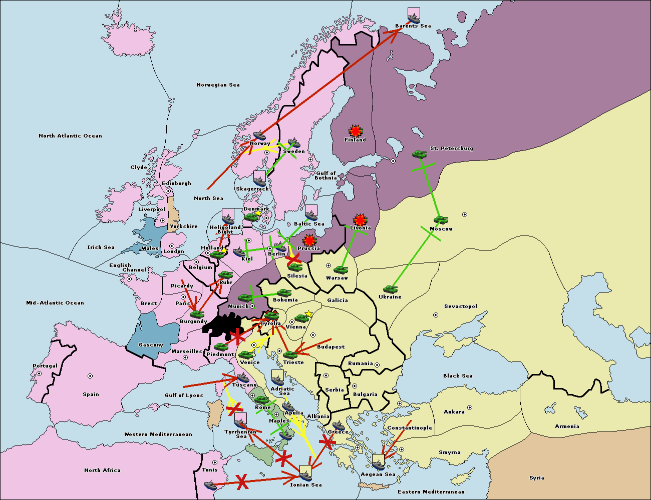 The fleet at Bulgaria (South Coast) move to Aegean Sea.