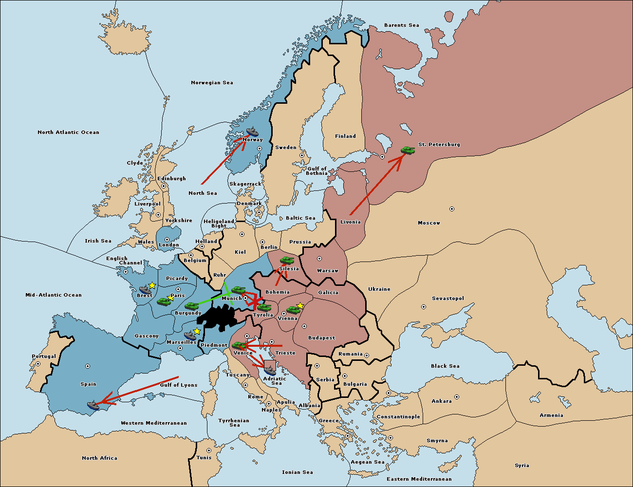 The army at Tyrolia move to Munich.