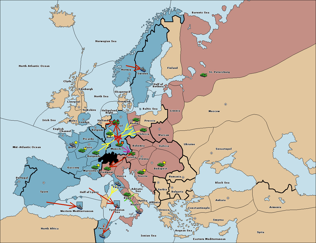 The fleet at Spain (South Coast) move to Western Mediterranean.