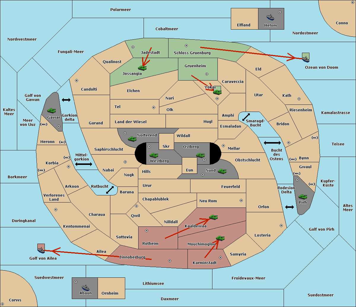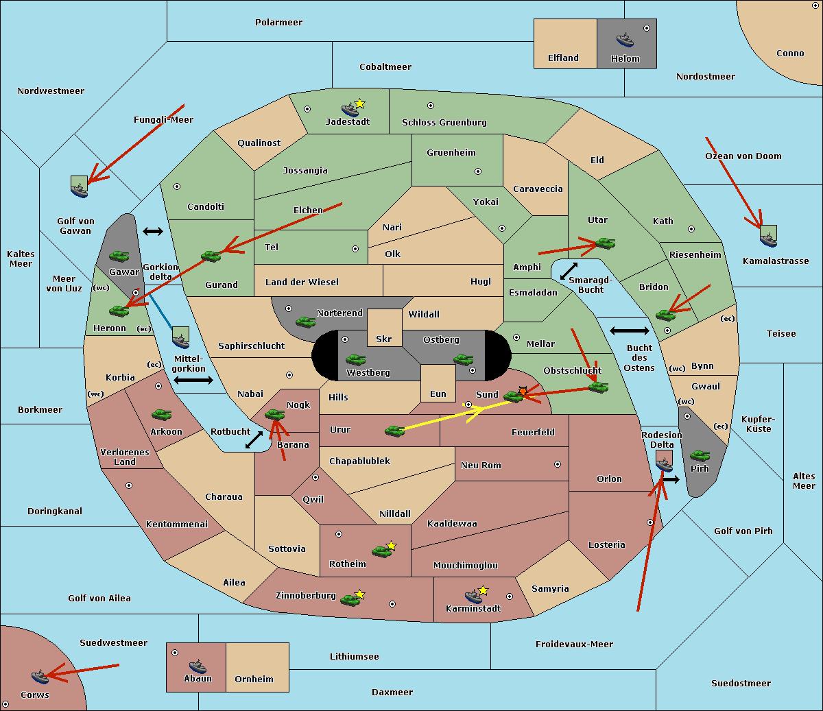 The fleet at Schloss Gruenburg move to Ozean von Doom.