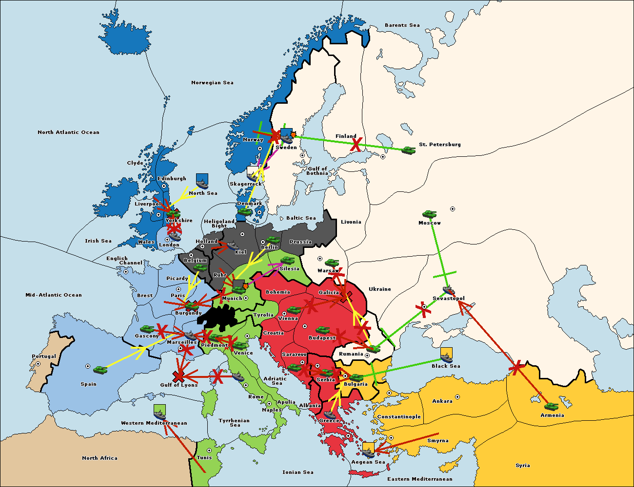 The fleet at Aegean Sea support hold to Bulgaria.
