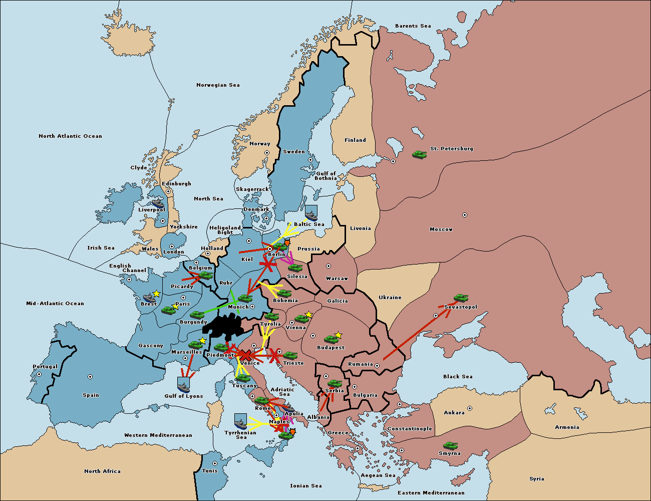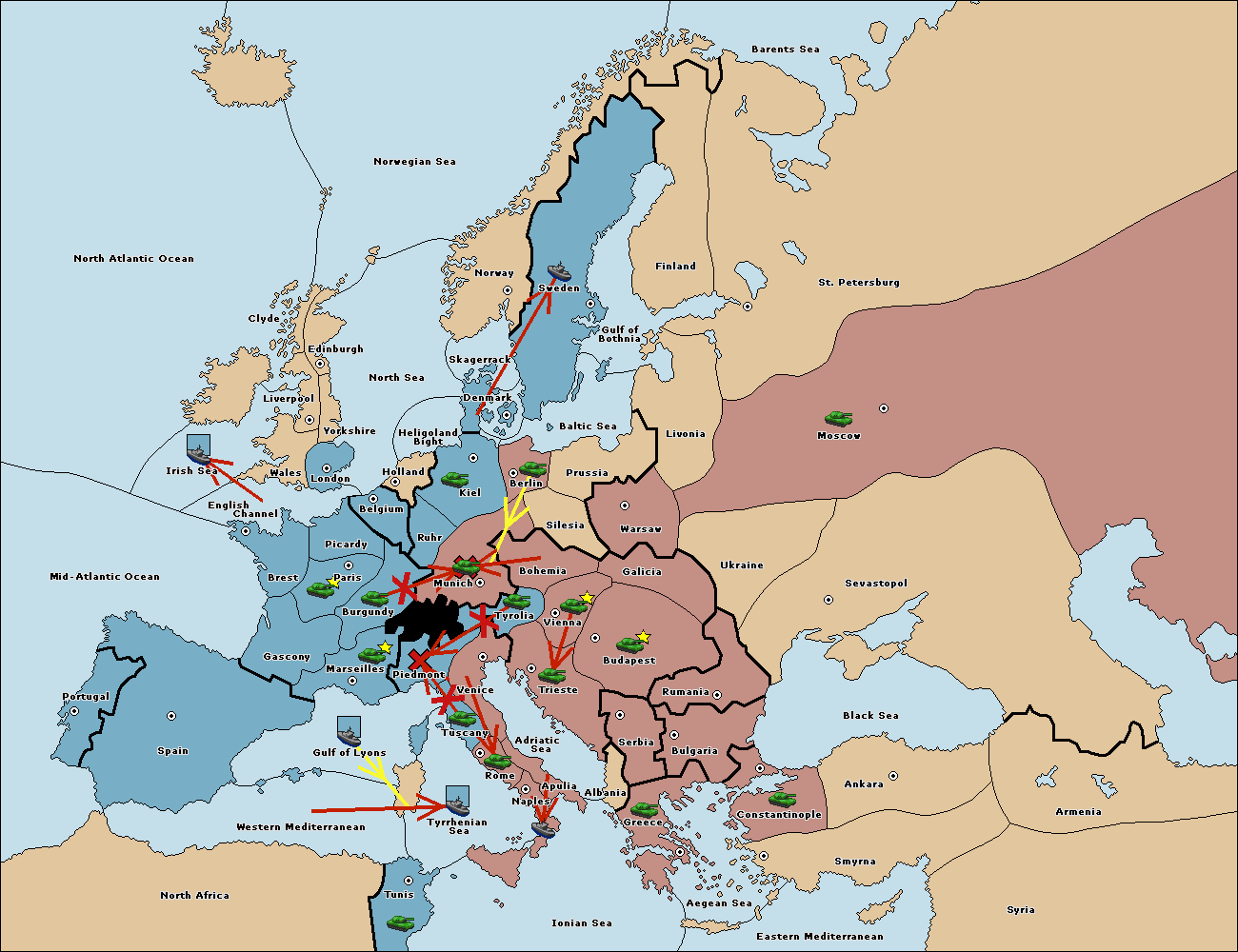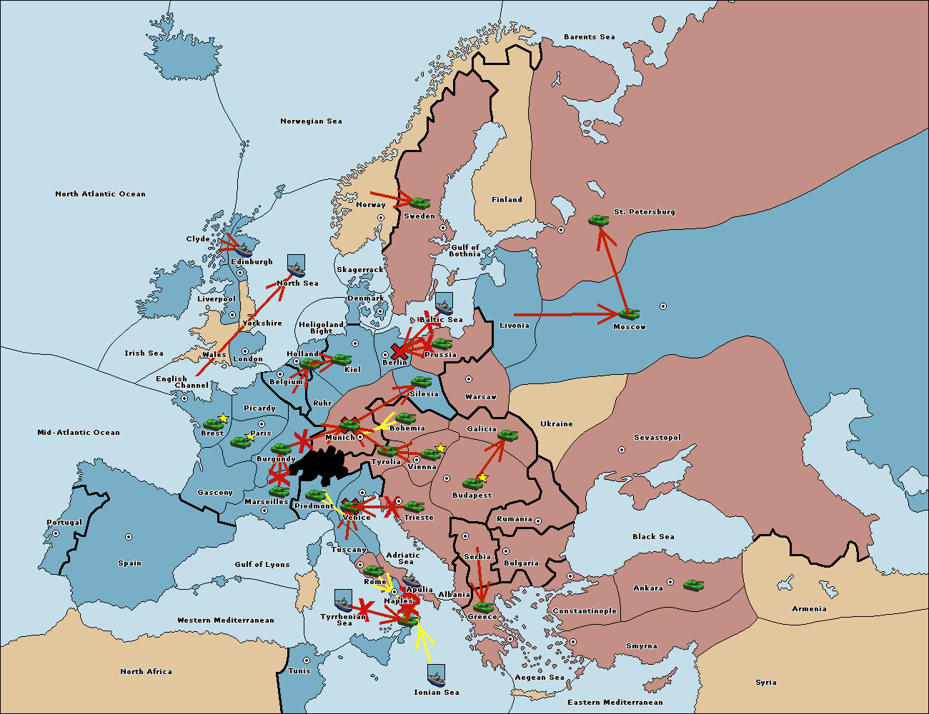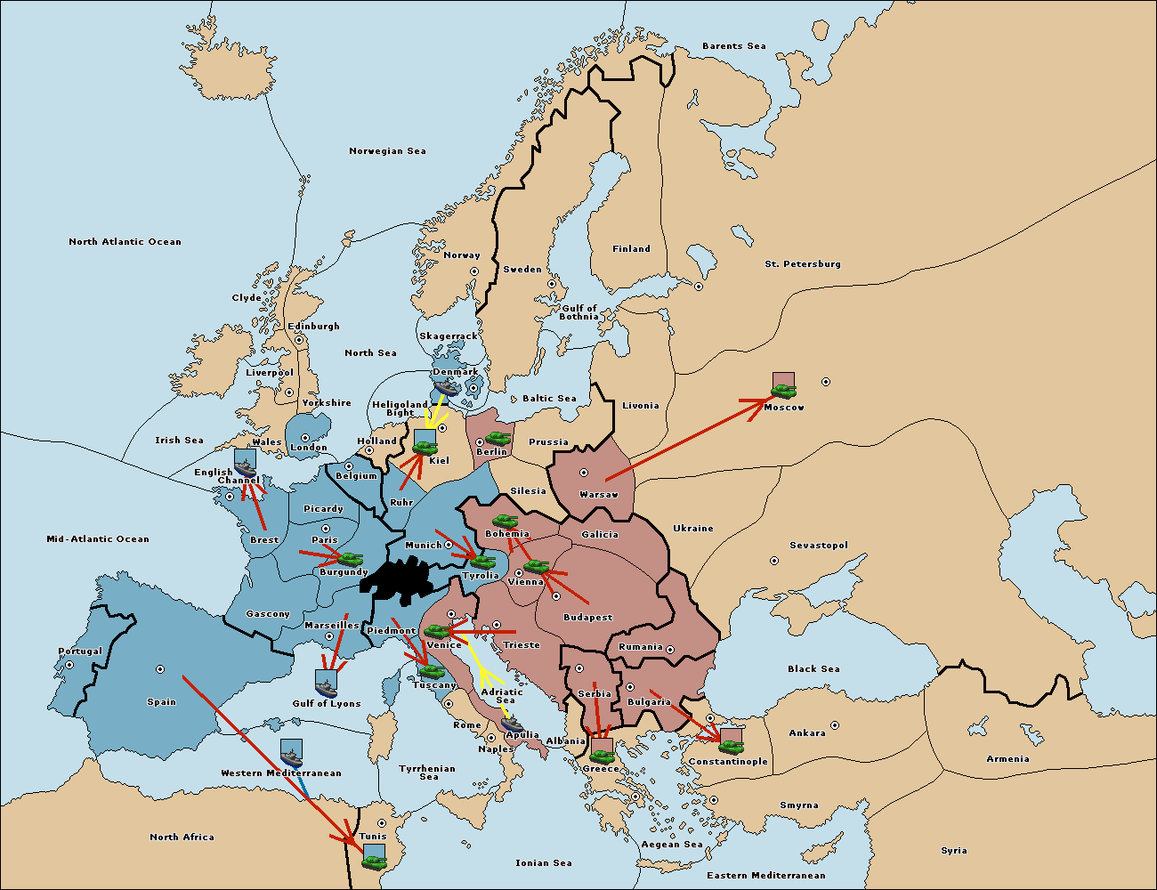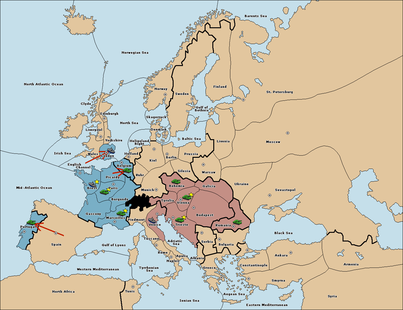 The fleet at Mid-Atlantic Ocean move to Western Mediterranean.
