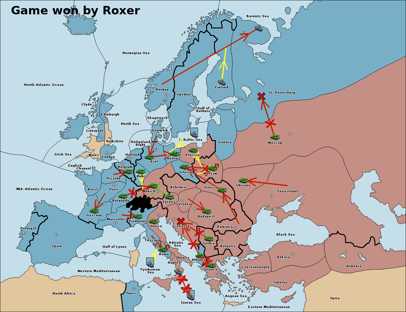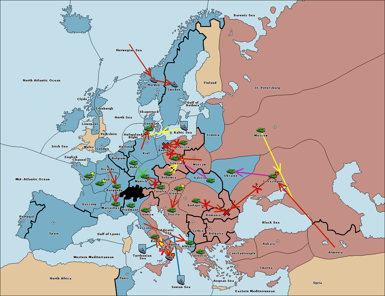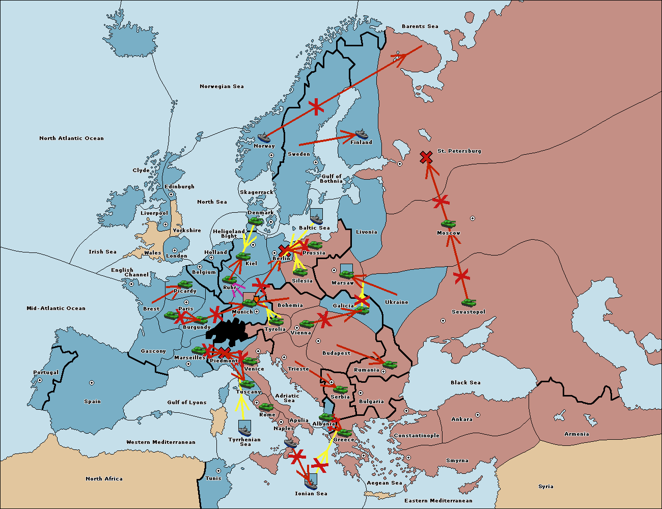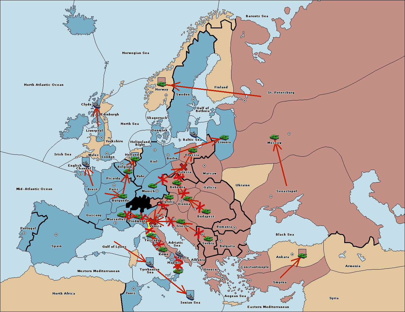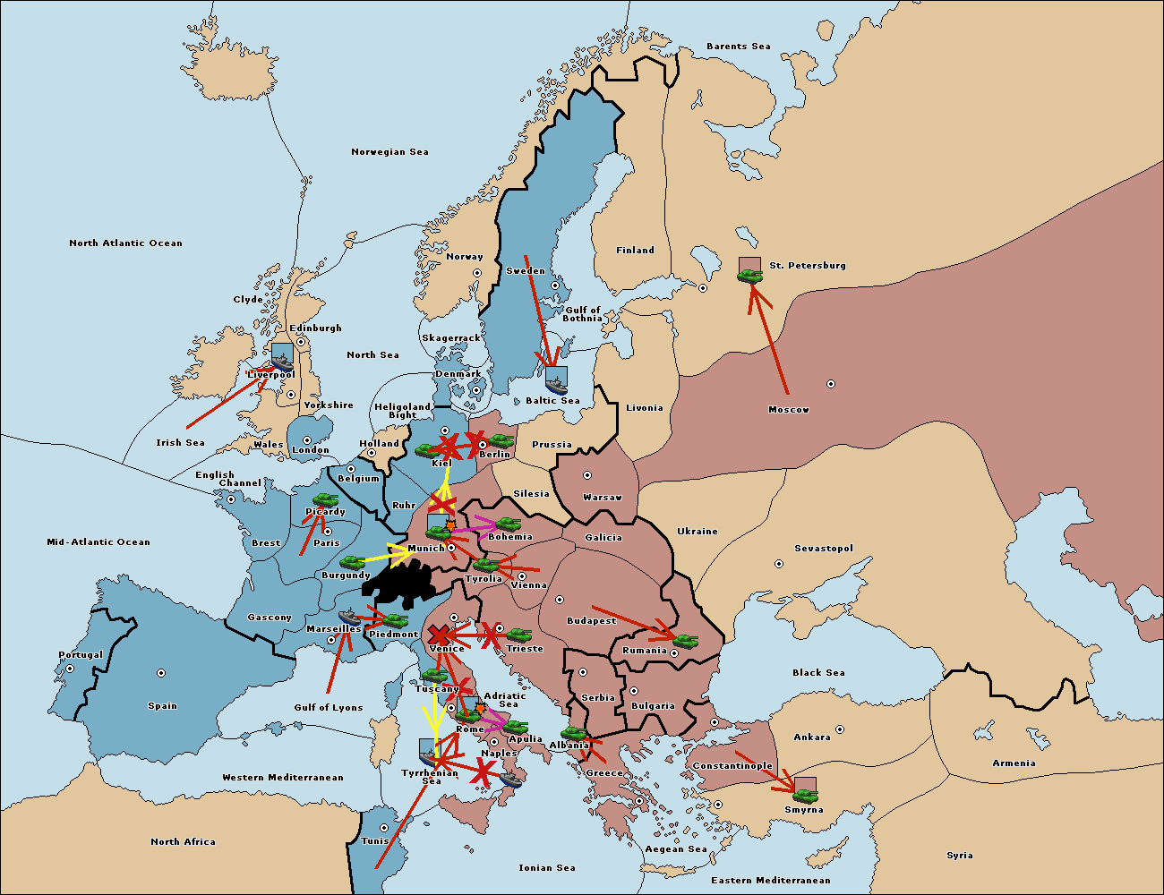 The fleet at Mid-Atlantic Ocean move to Western Mediterranean.