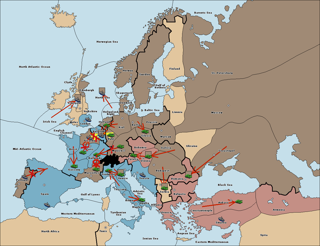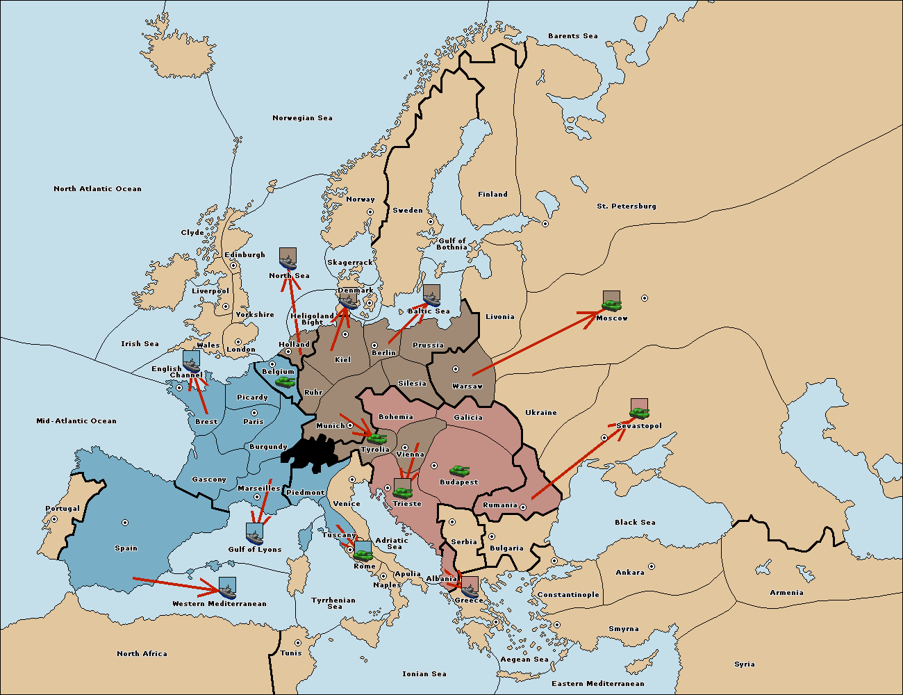The fleet at Bulgaria (South Coast) move to Aegean Sea.