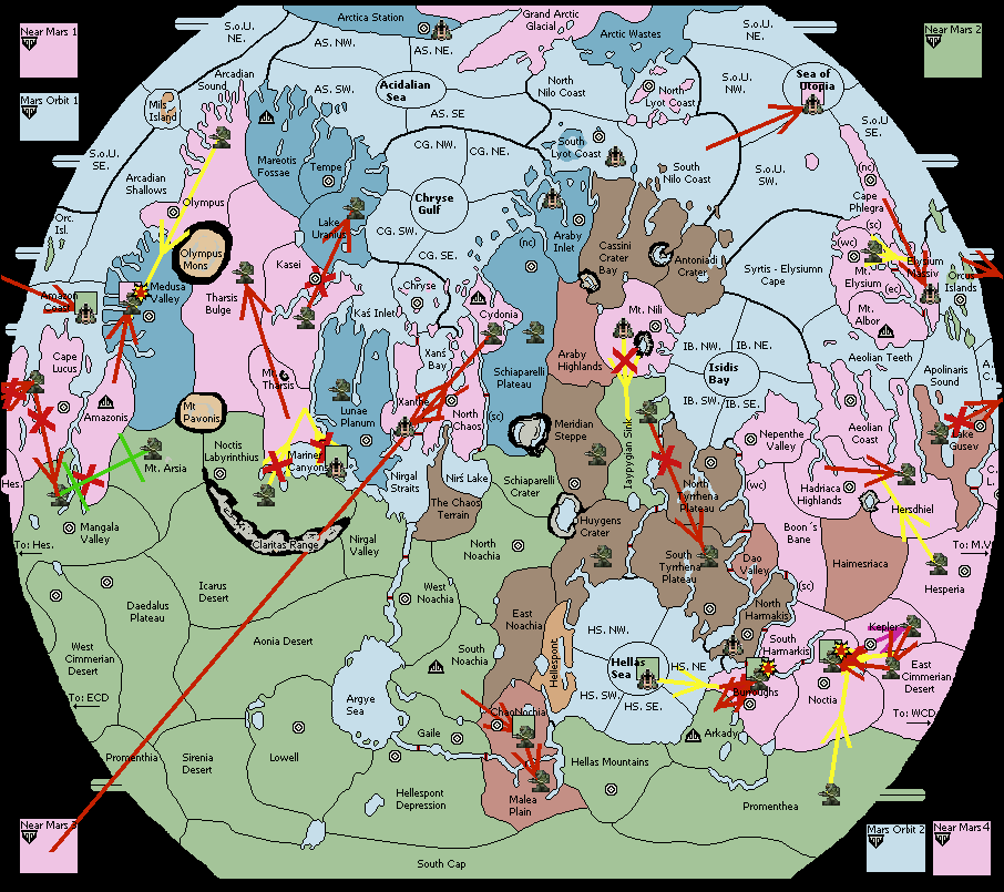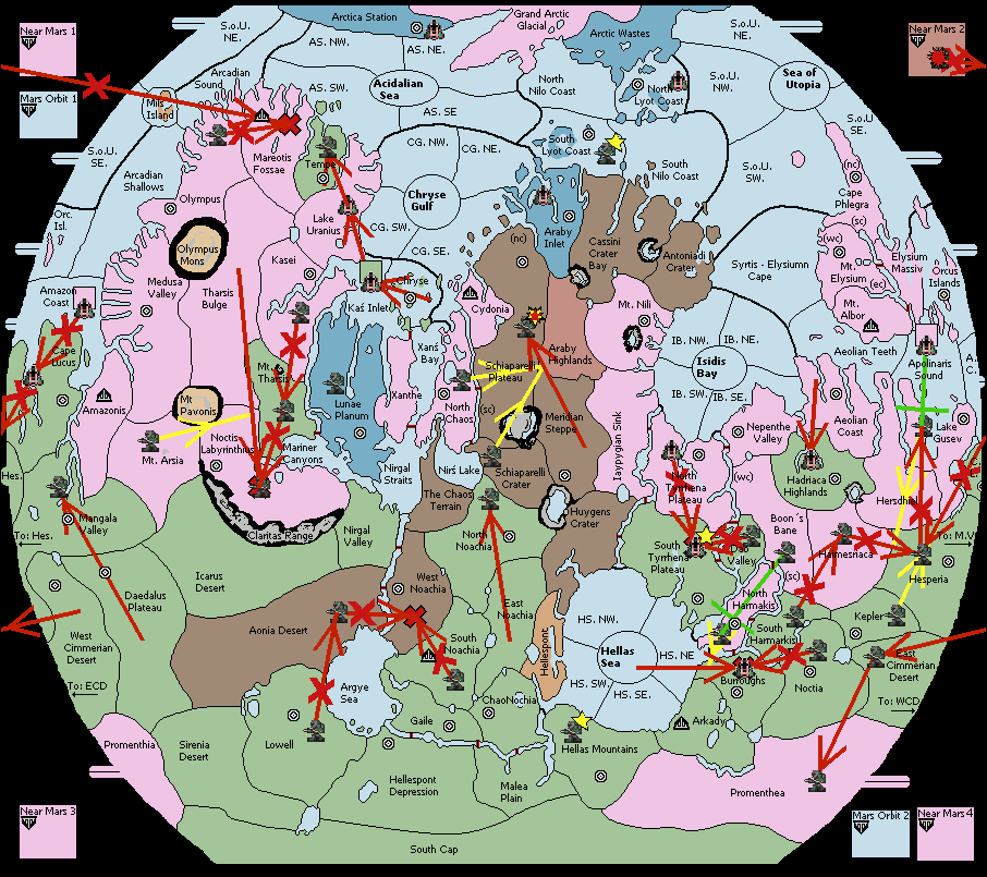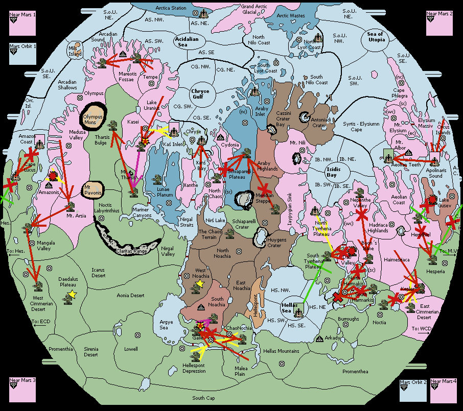 The fleet at Chryse Gulf - Sth Est support move to Schiaparelli Plateau from Cydonia.