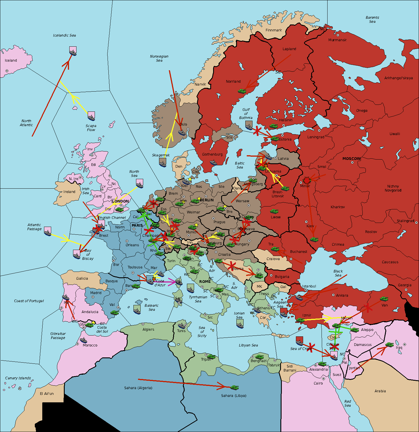 World War II, Очки за центры, Без переписки, Анонимная, С выбором страны
