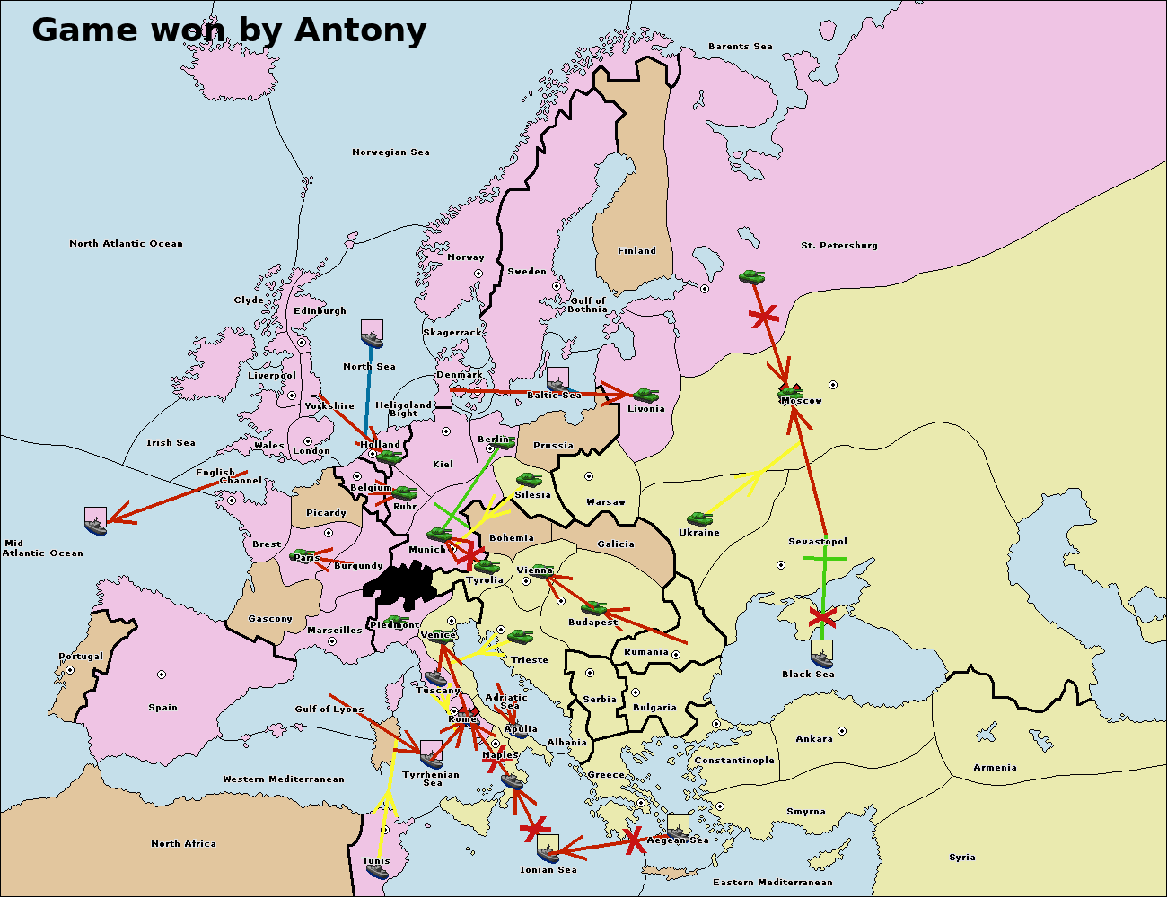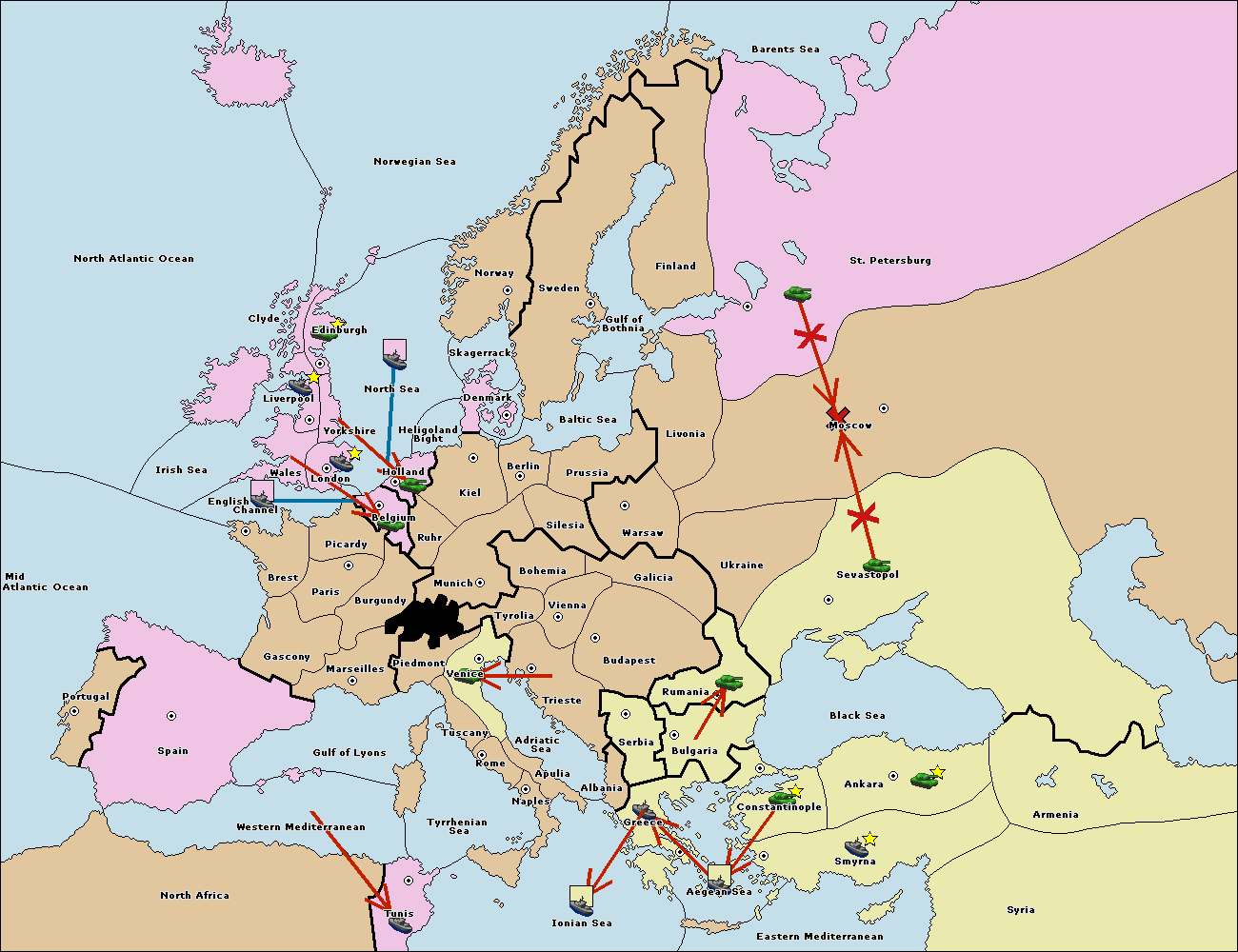 The fleet at Bulgaria (South Coast) move to Greece.
