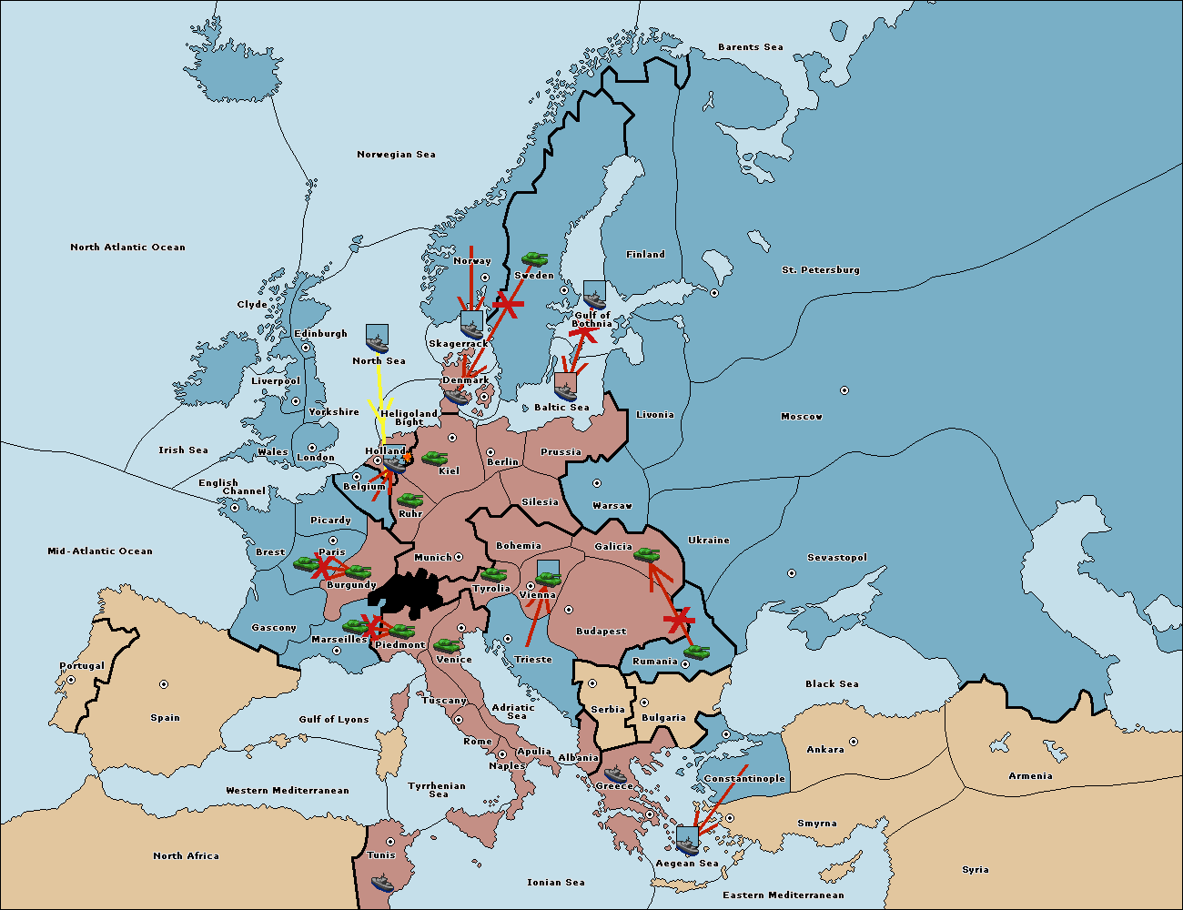 The fleet at Sevastopol move to Black Sea.