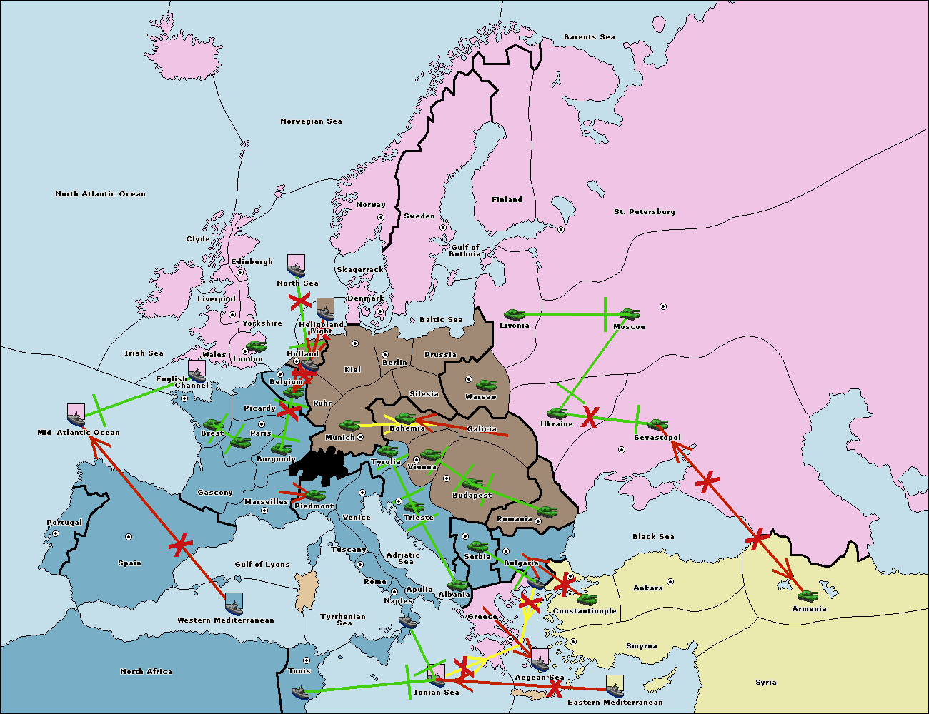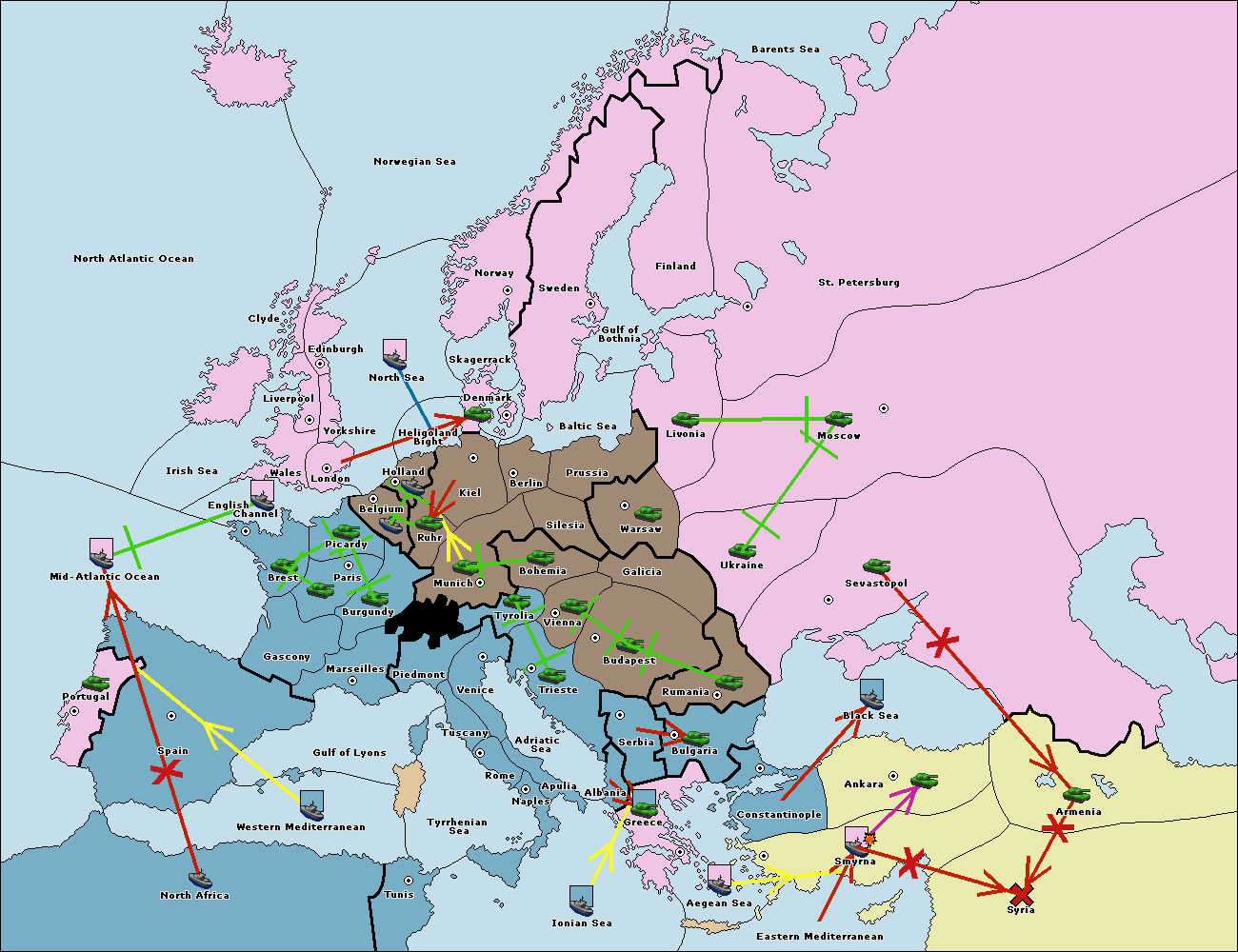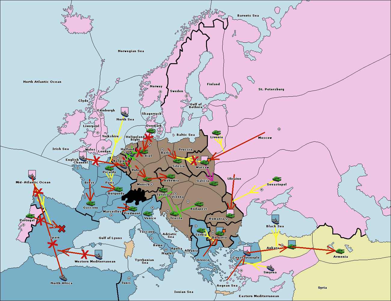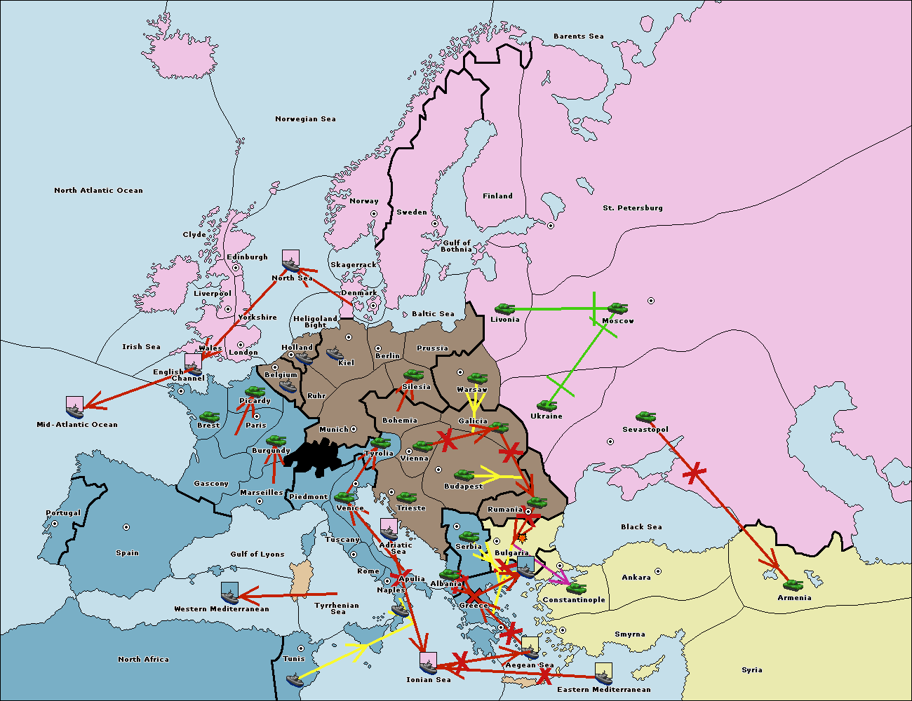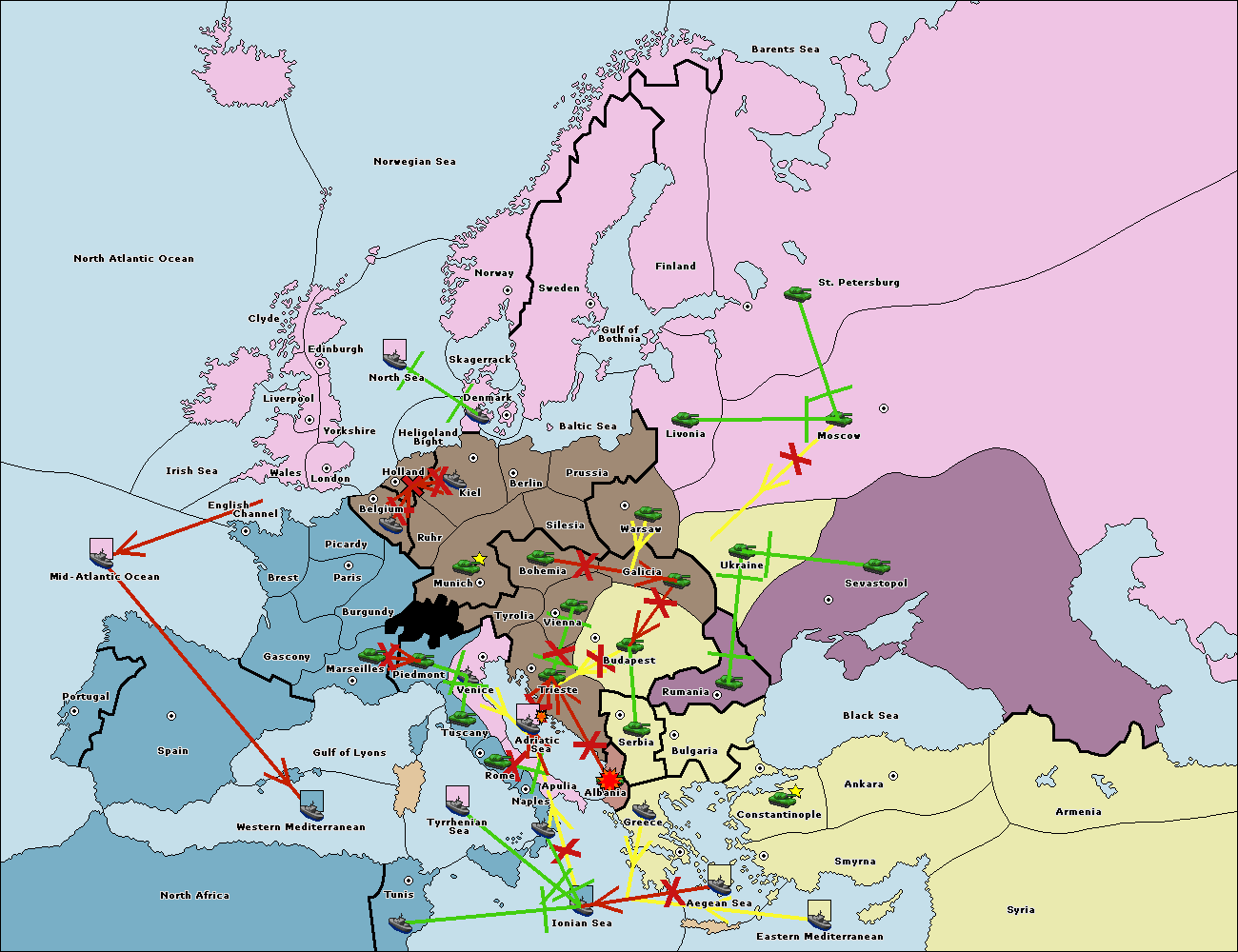 The fleet at Mid-Atlantic Ocean move to Western Mediterranean.