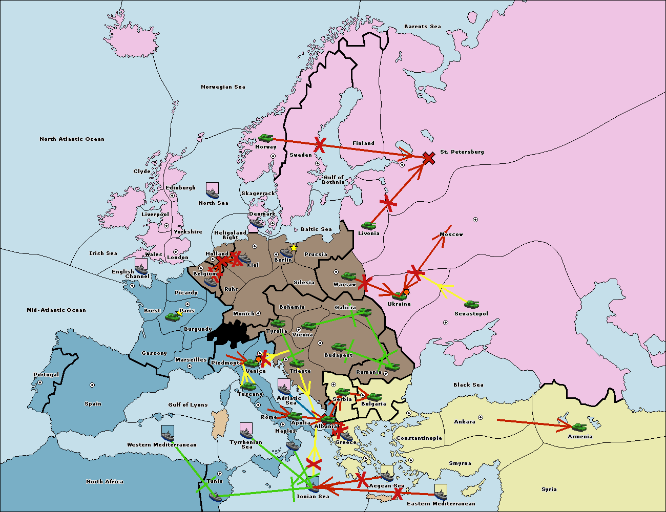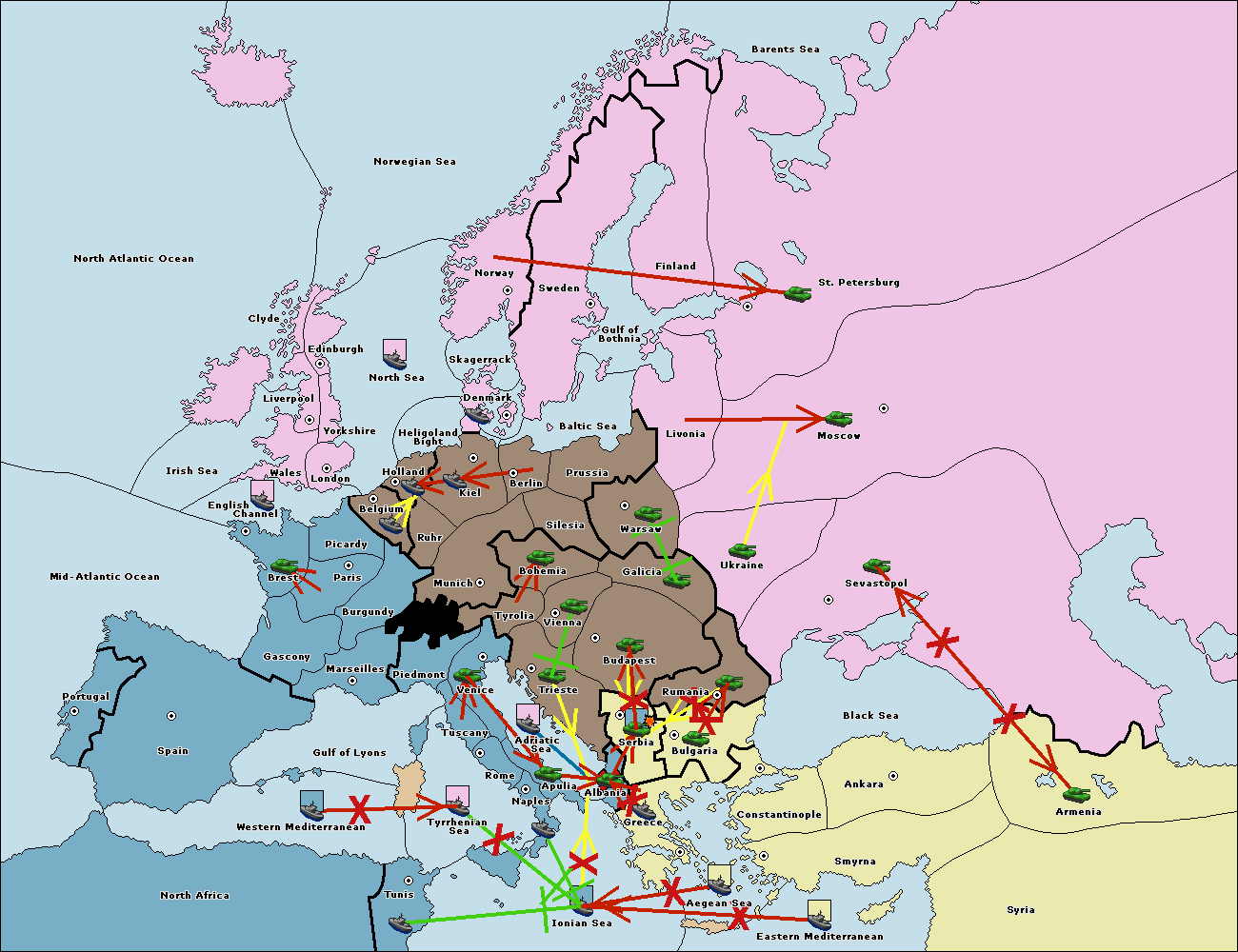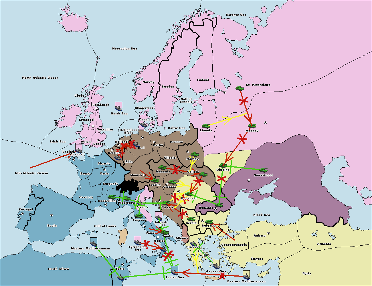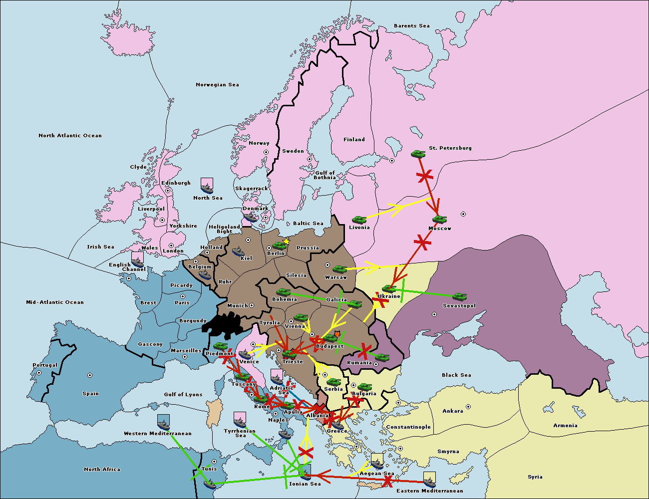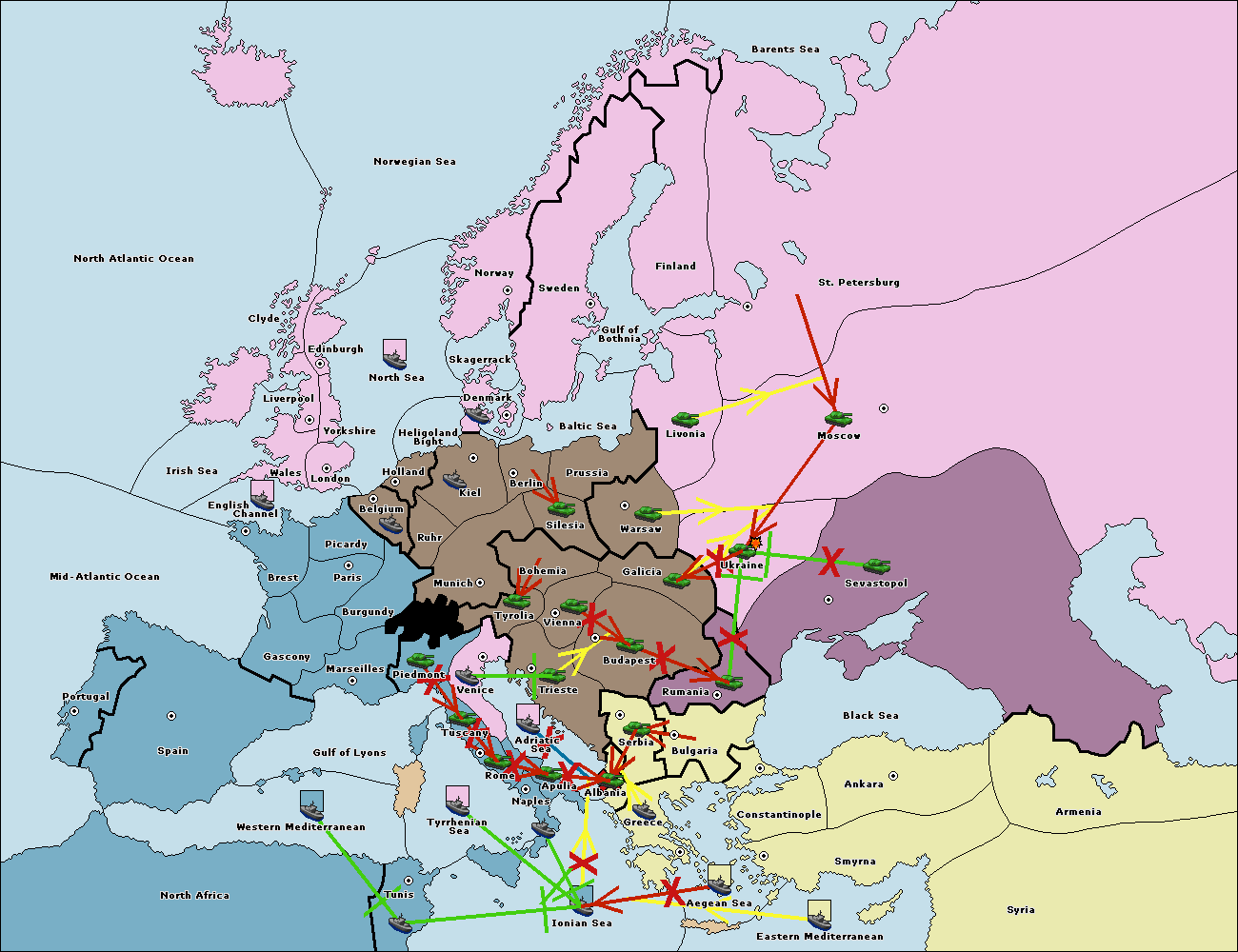 The fleet at Ionian Sea support hold to Adriatic Sea.