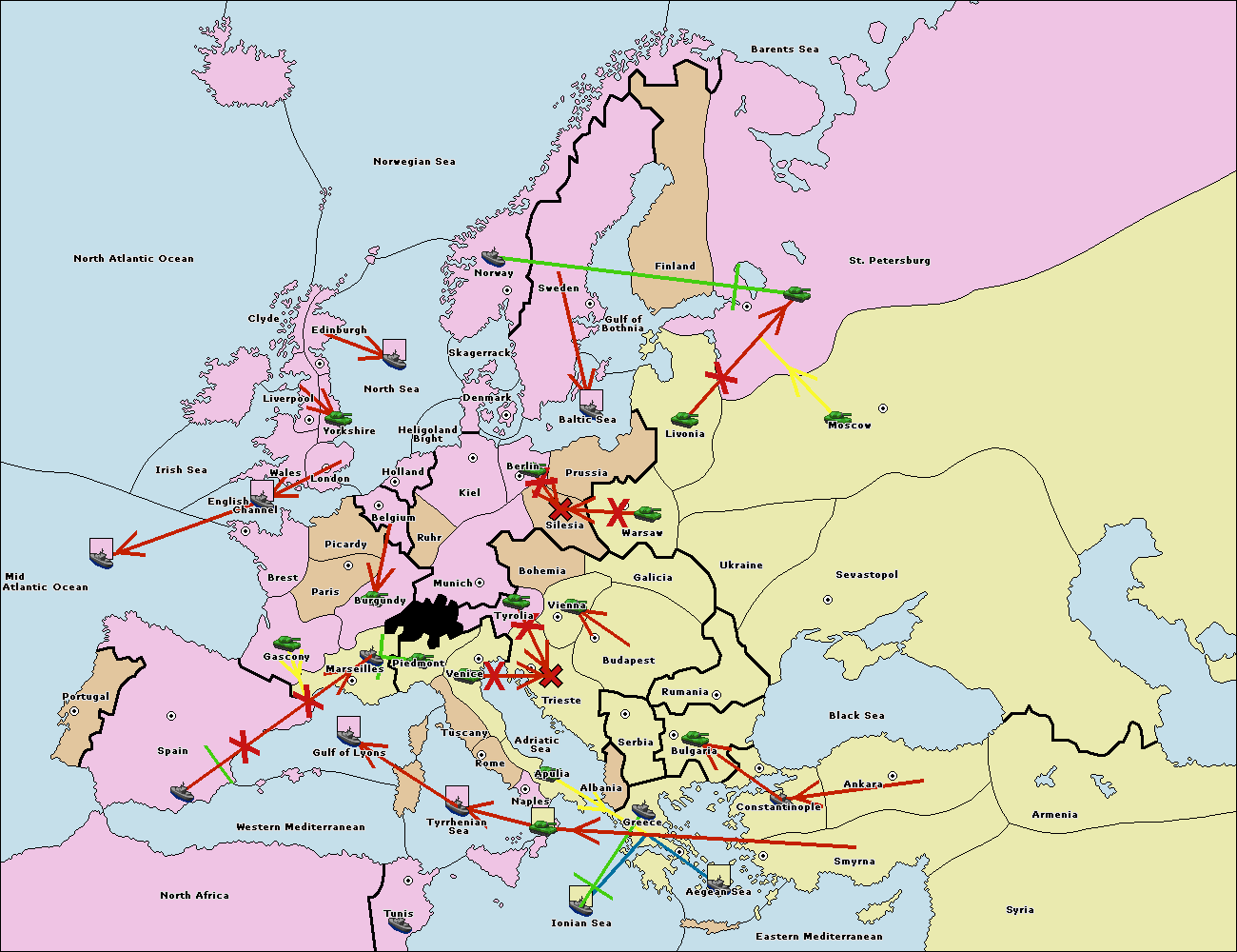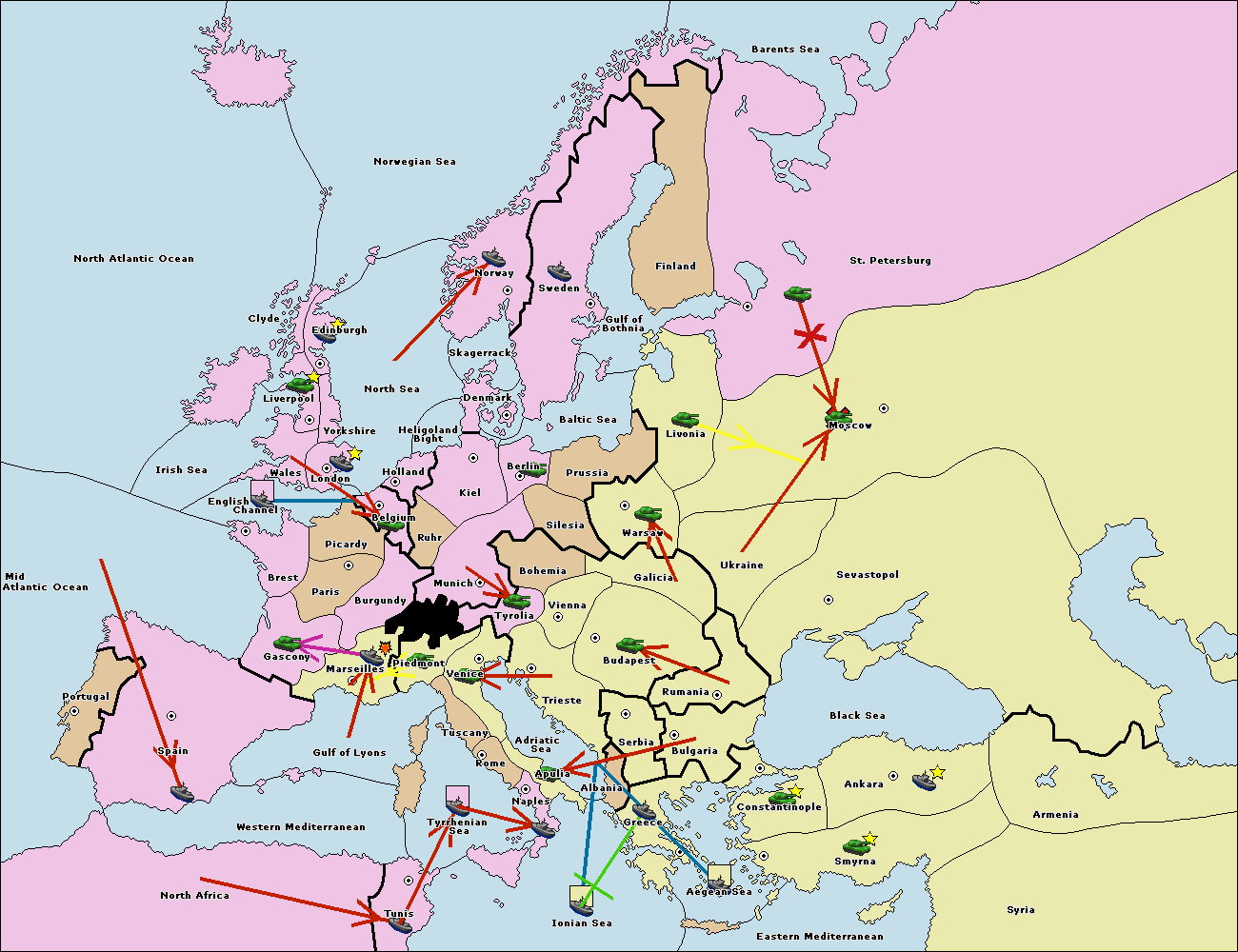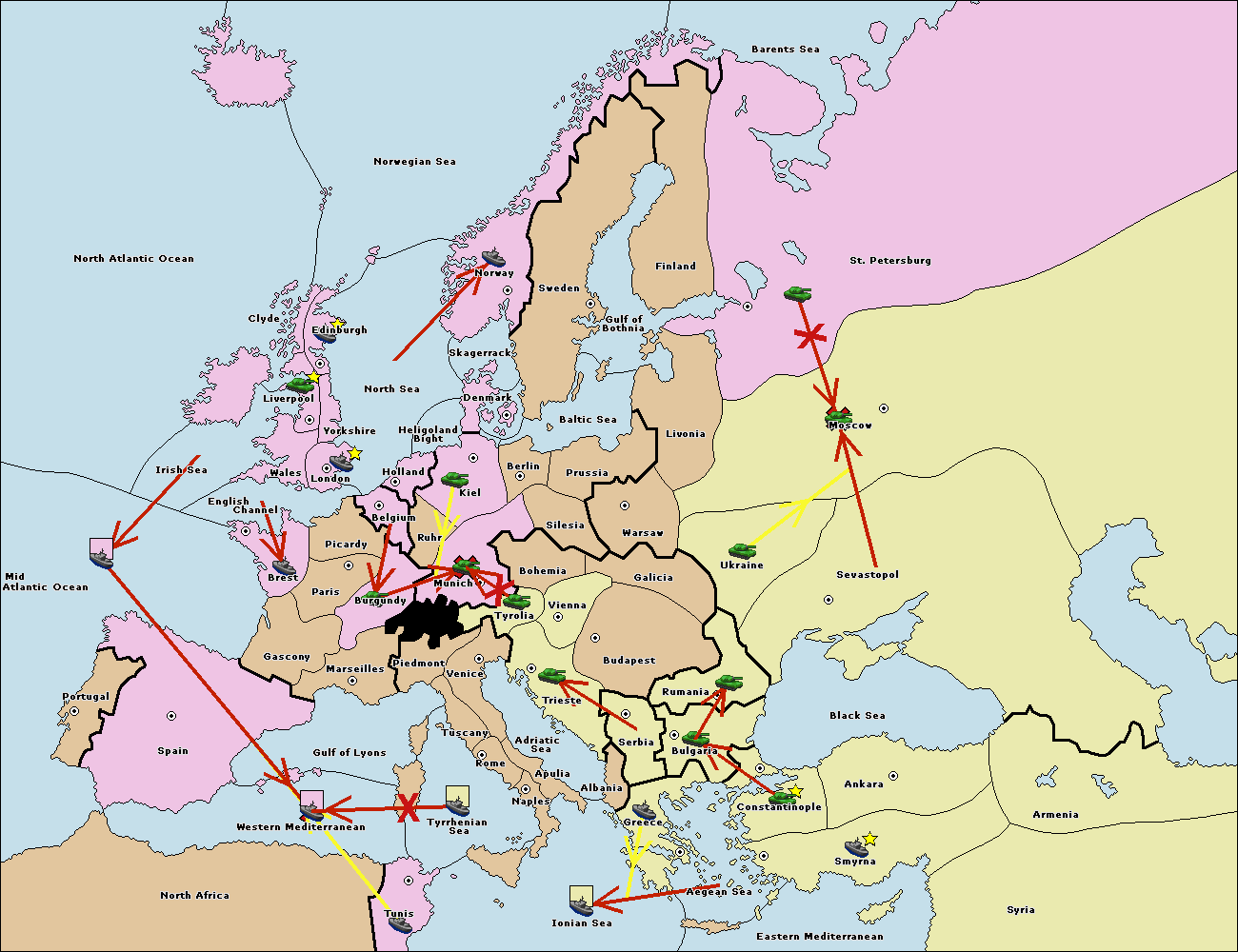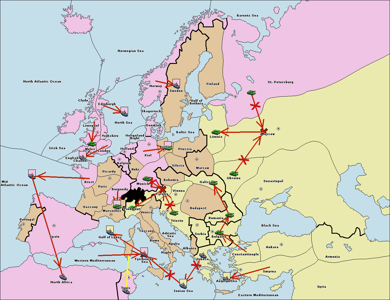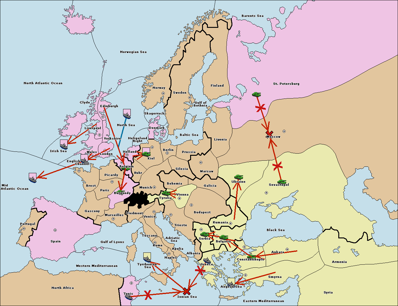 The fleet at Bulgaria (South Coast) move to Greece.