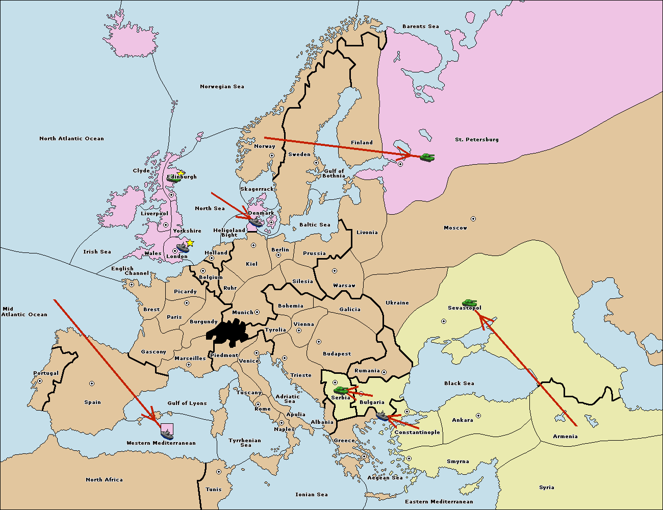 The fleet at Mid-Atlantic Ocean move to Western Mediterranean.