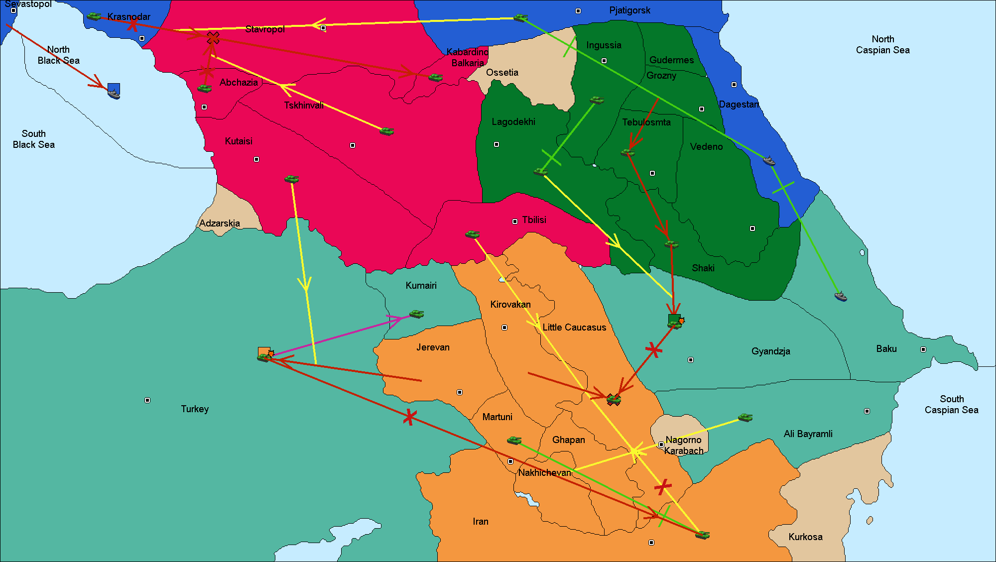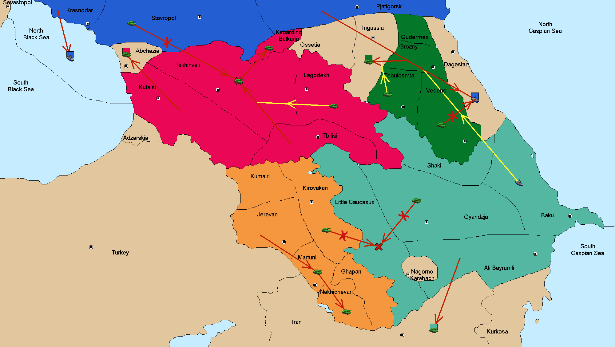 The army at Gyandzja move to Little Caucasia.