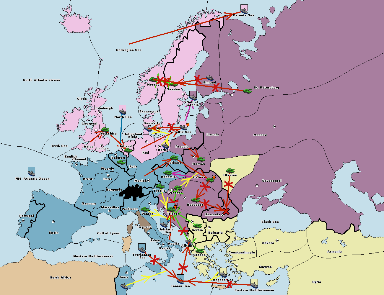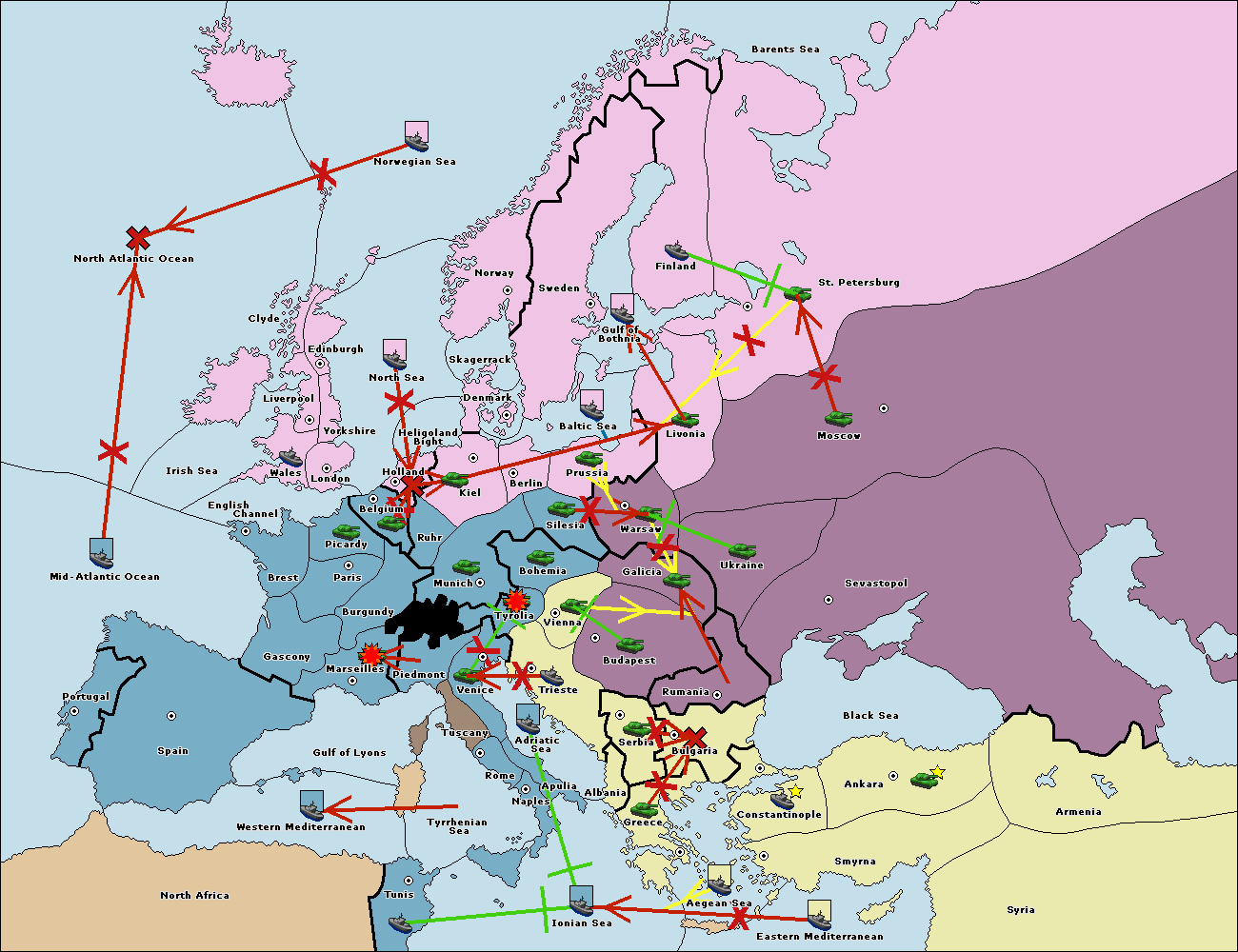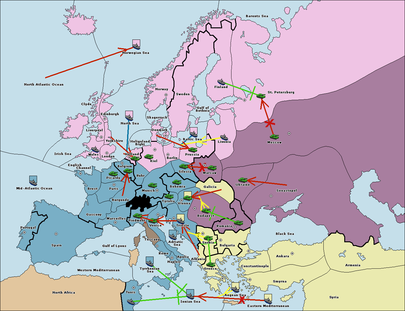 The fleet at Ionian Sea support move to Tunis from Tyrrhenian Sea.