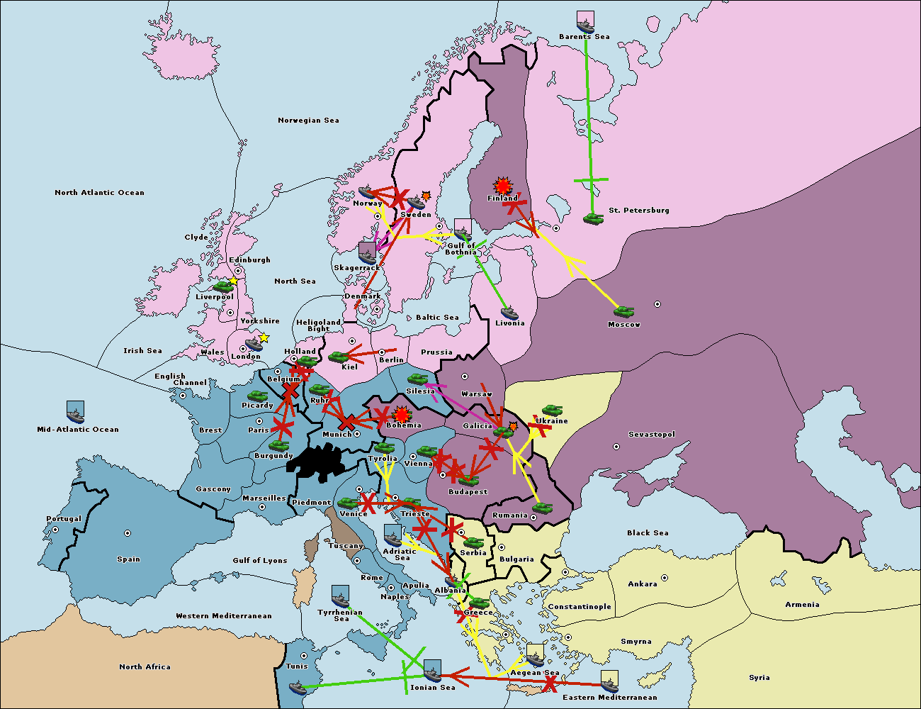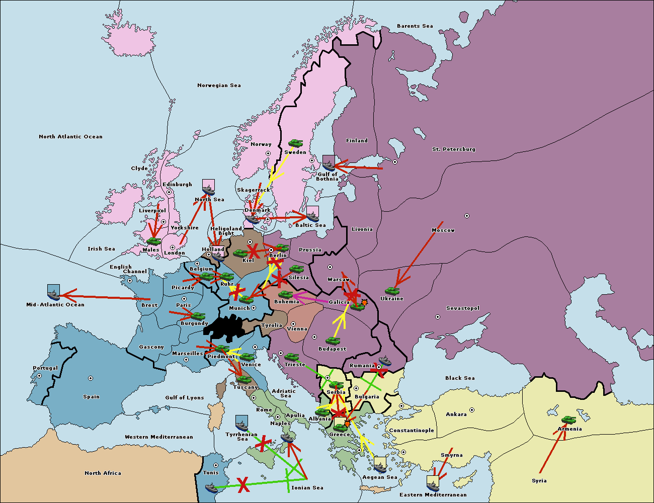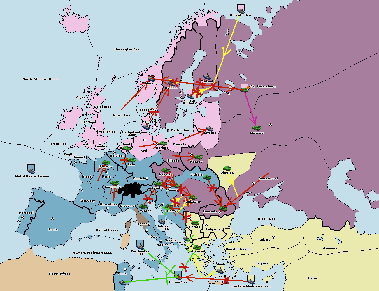 The fleet at Ionian Sea support move to Tunis from Tyrrhenian Sea.