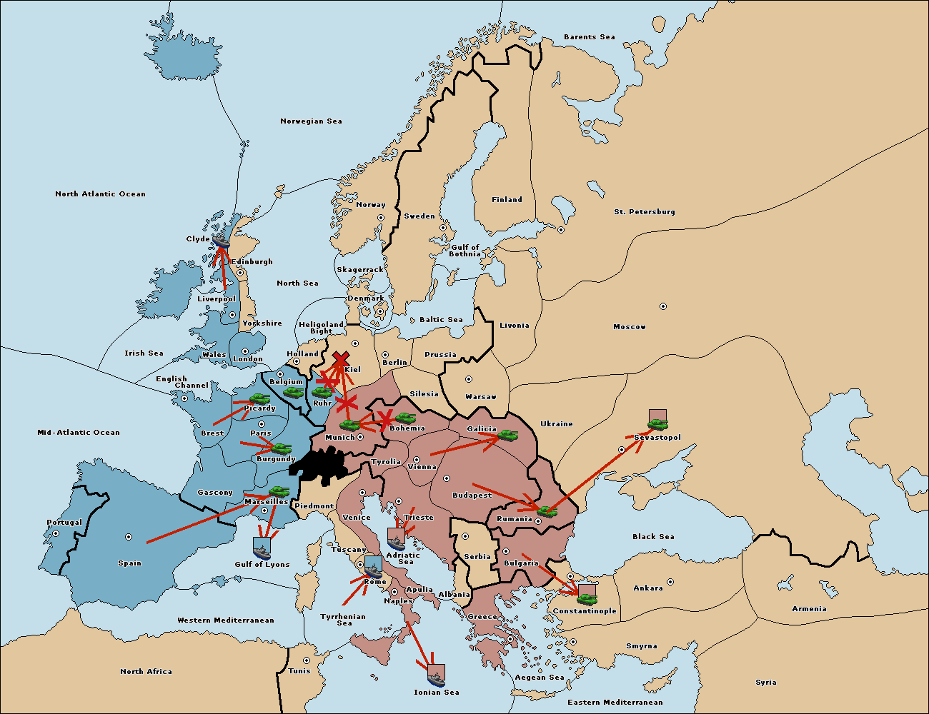 The fleet at Gulf of Lyons move to Tyrrhenian Sea.