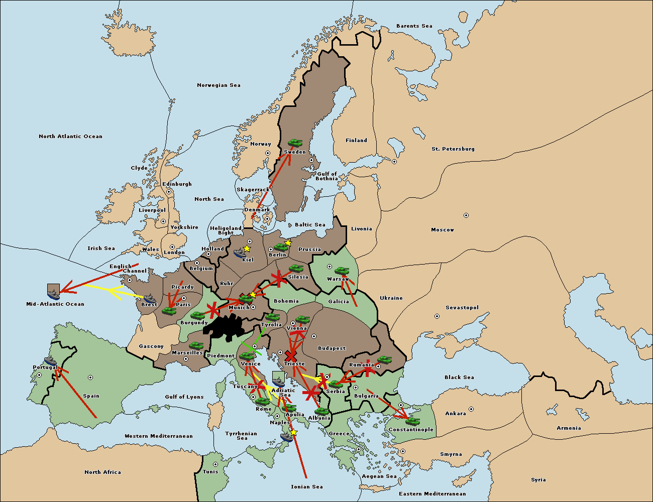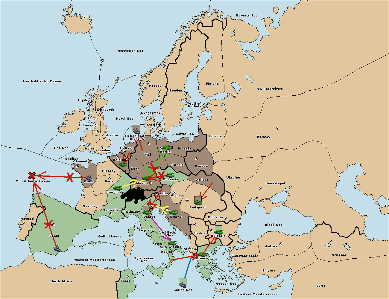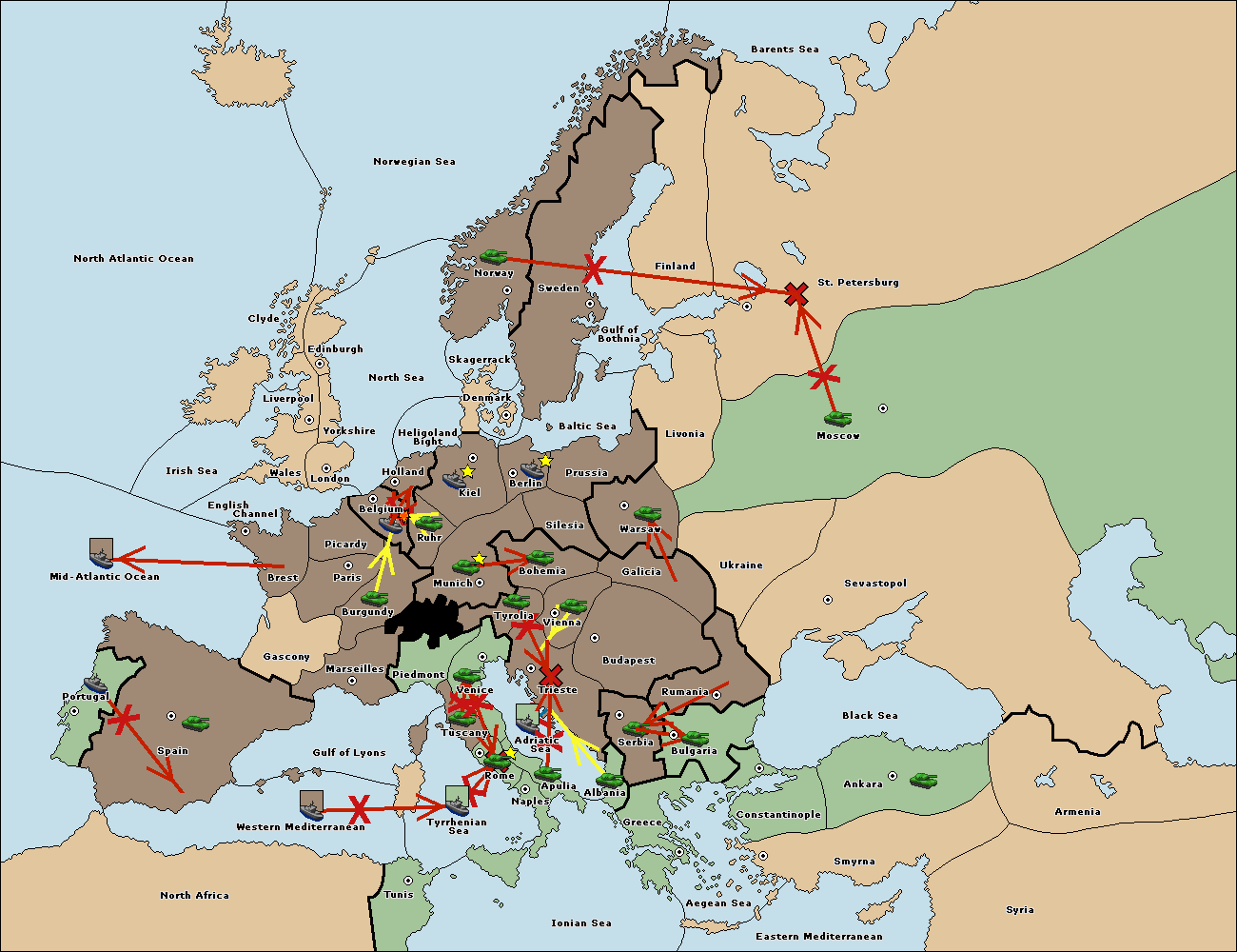 The fleet at Mid-Atlantic Ocean move to Western Mediterranean.