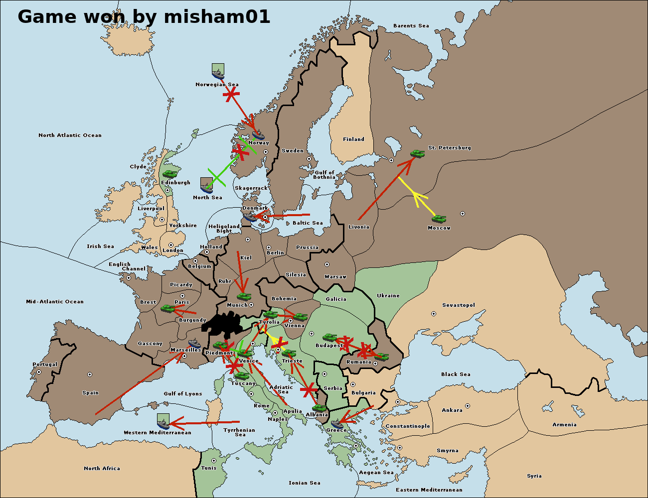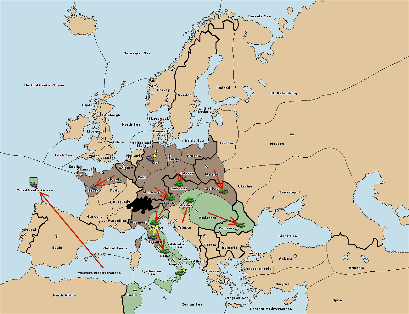 The fleet at Bulgaria (South Coast) move to Greece.