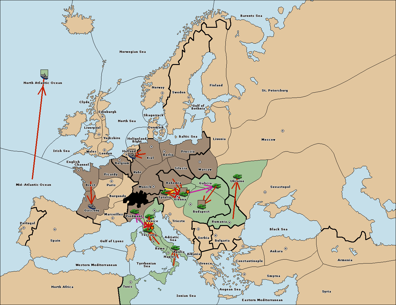 The army at Tyrolia move to Vienna.