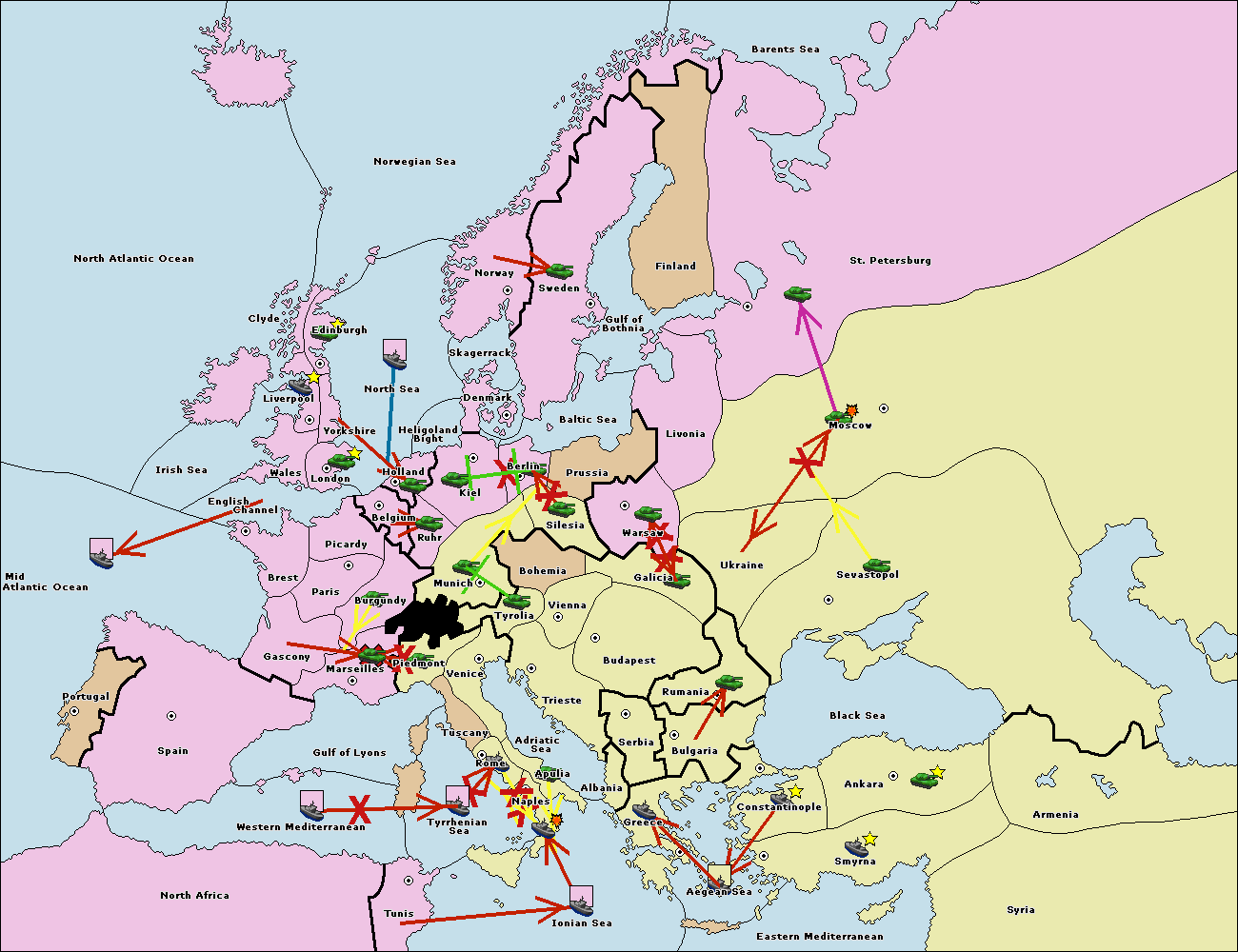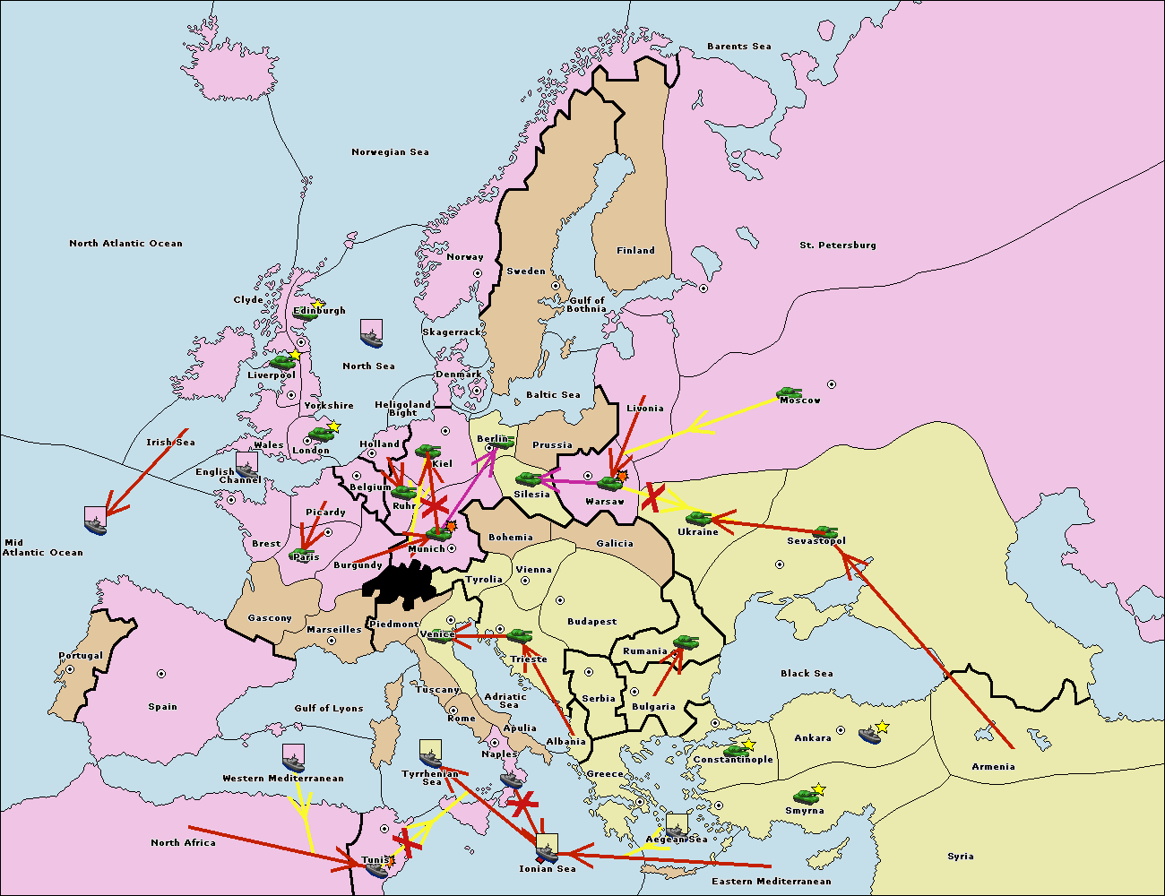 The fleet at Mid-Atlantic Ocean move to Western Mediterranean.