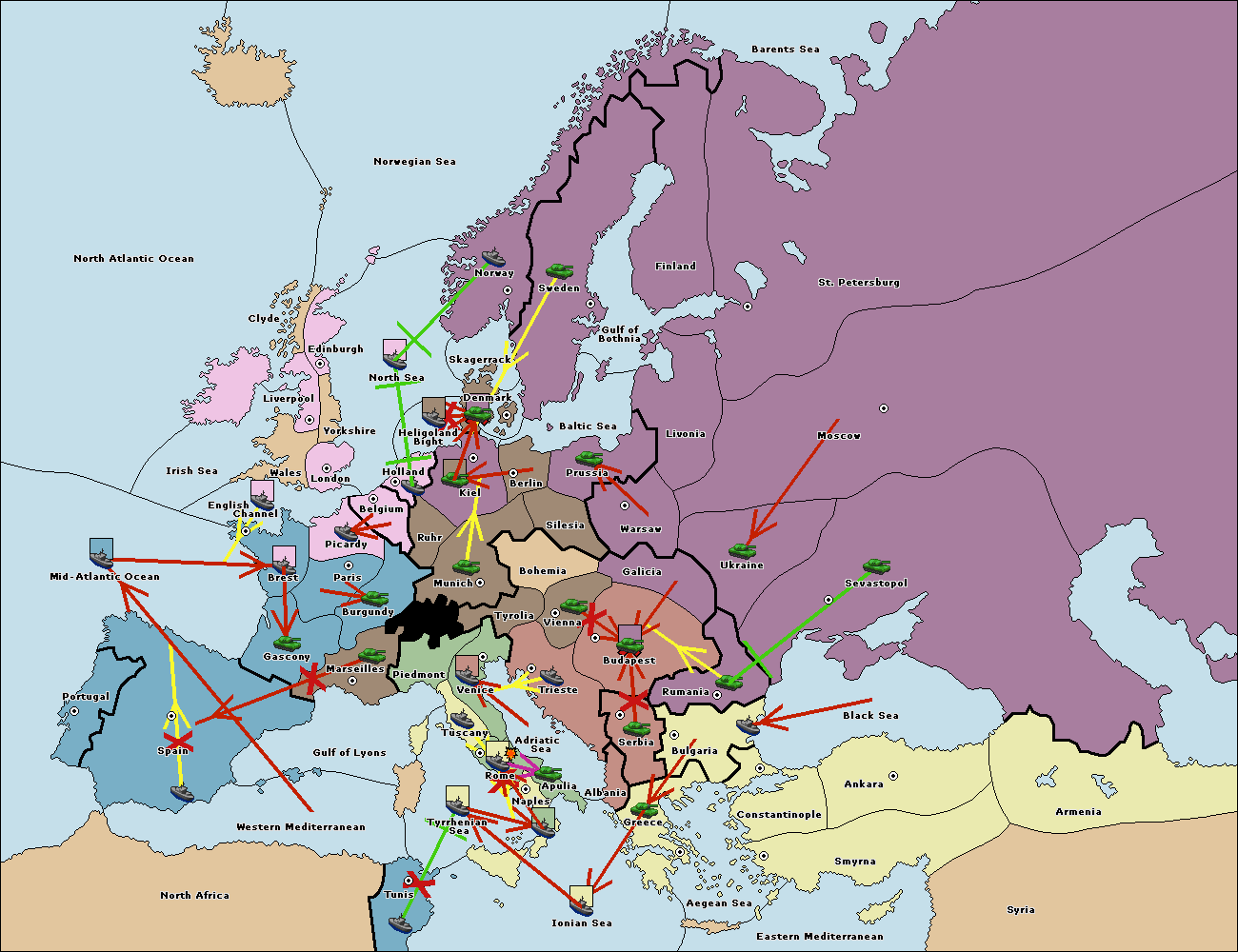 The fleet at Tyrrhenian Sea move to Gulf of Lyons.