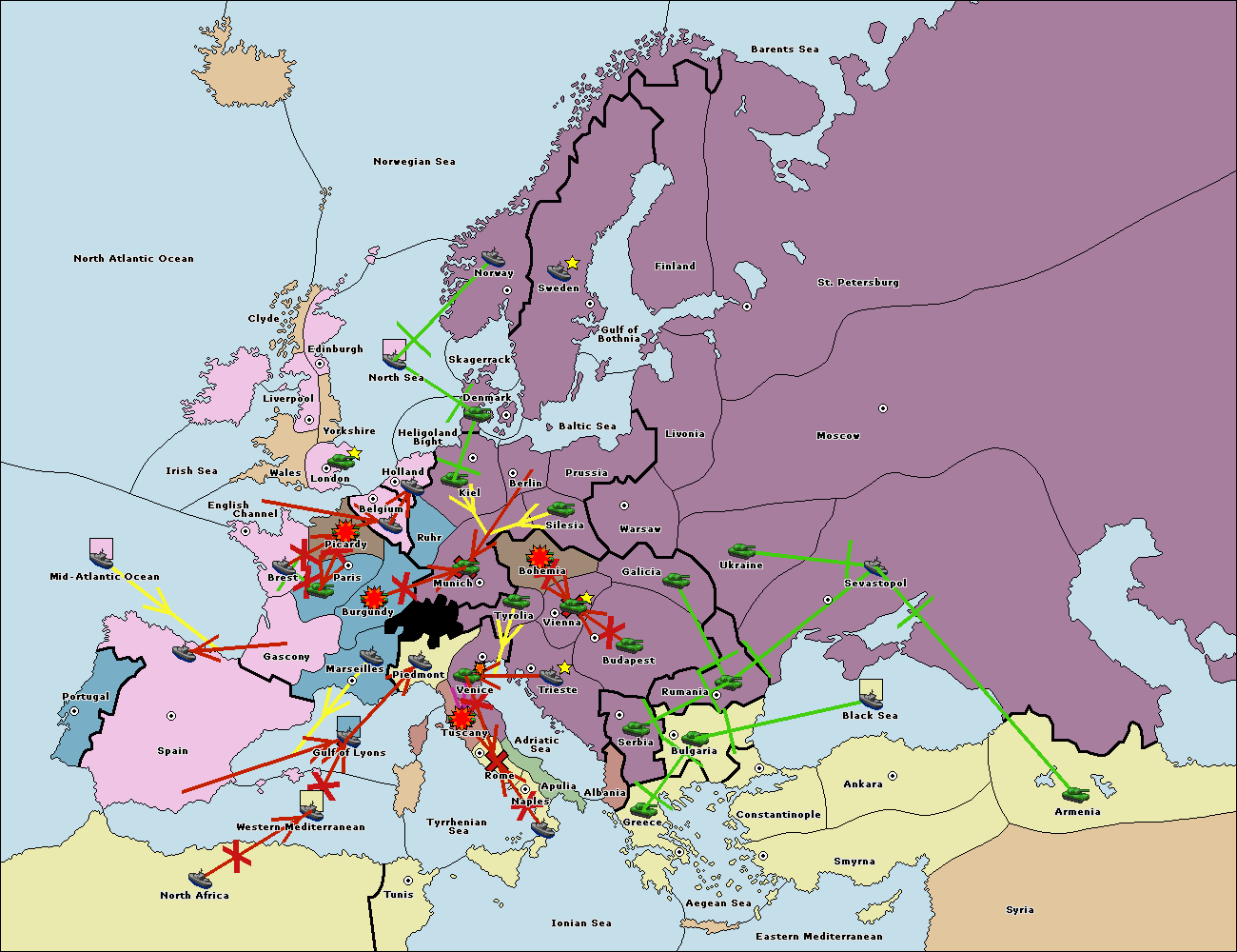 The fleet at Gulf of Lyons support move to Marseilles from Piedmont.