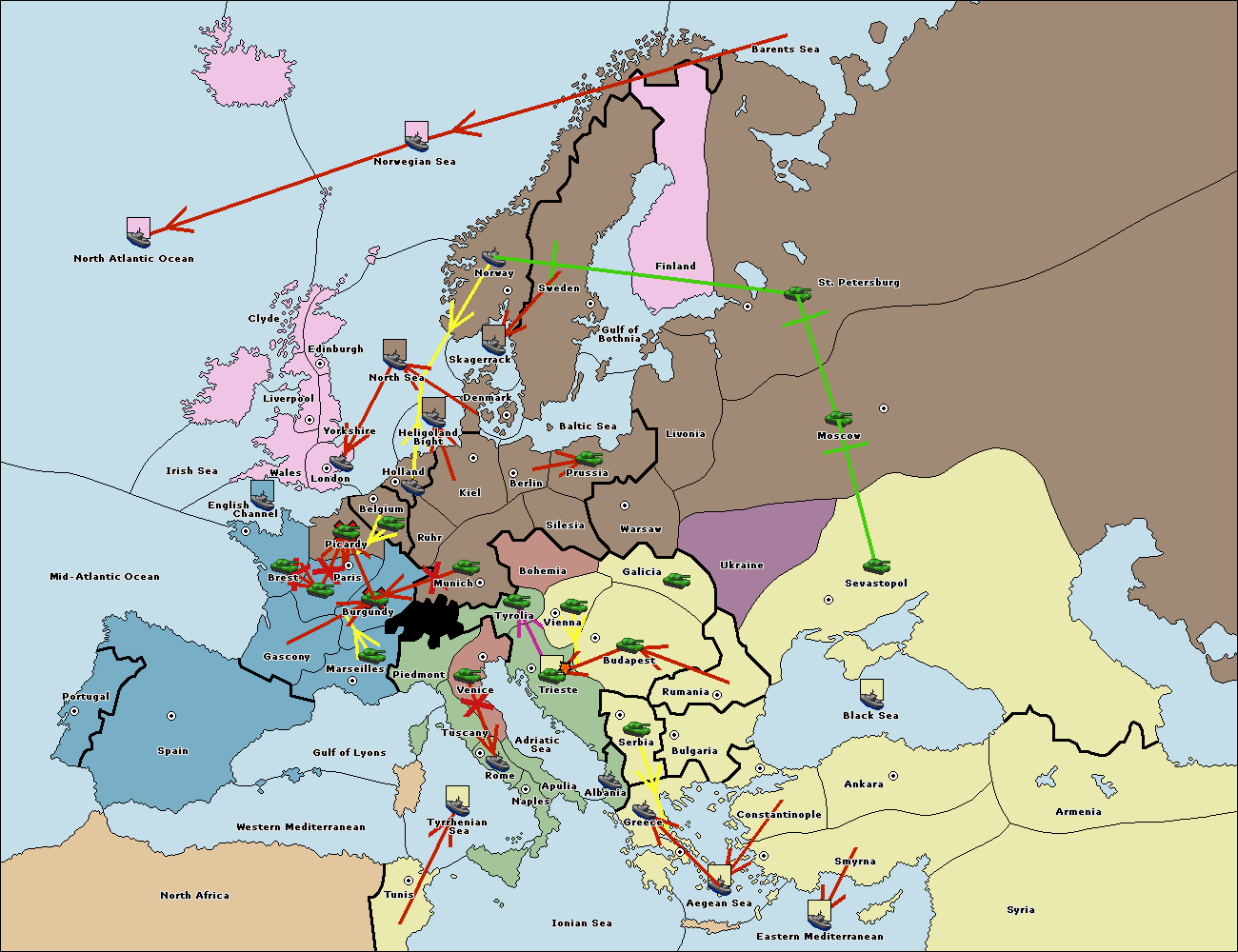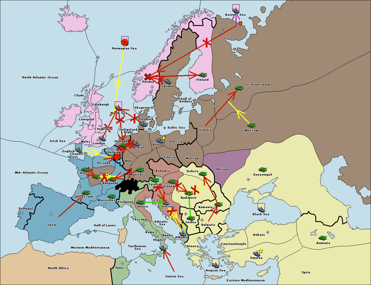 The fleet at St. Petersburg (North Coast) move to Barents Sea.